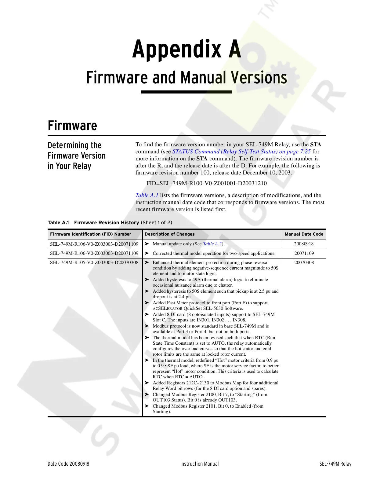 Table A.1 Firmware Revision History (Sheet 1 of 2)