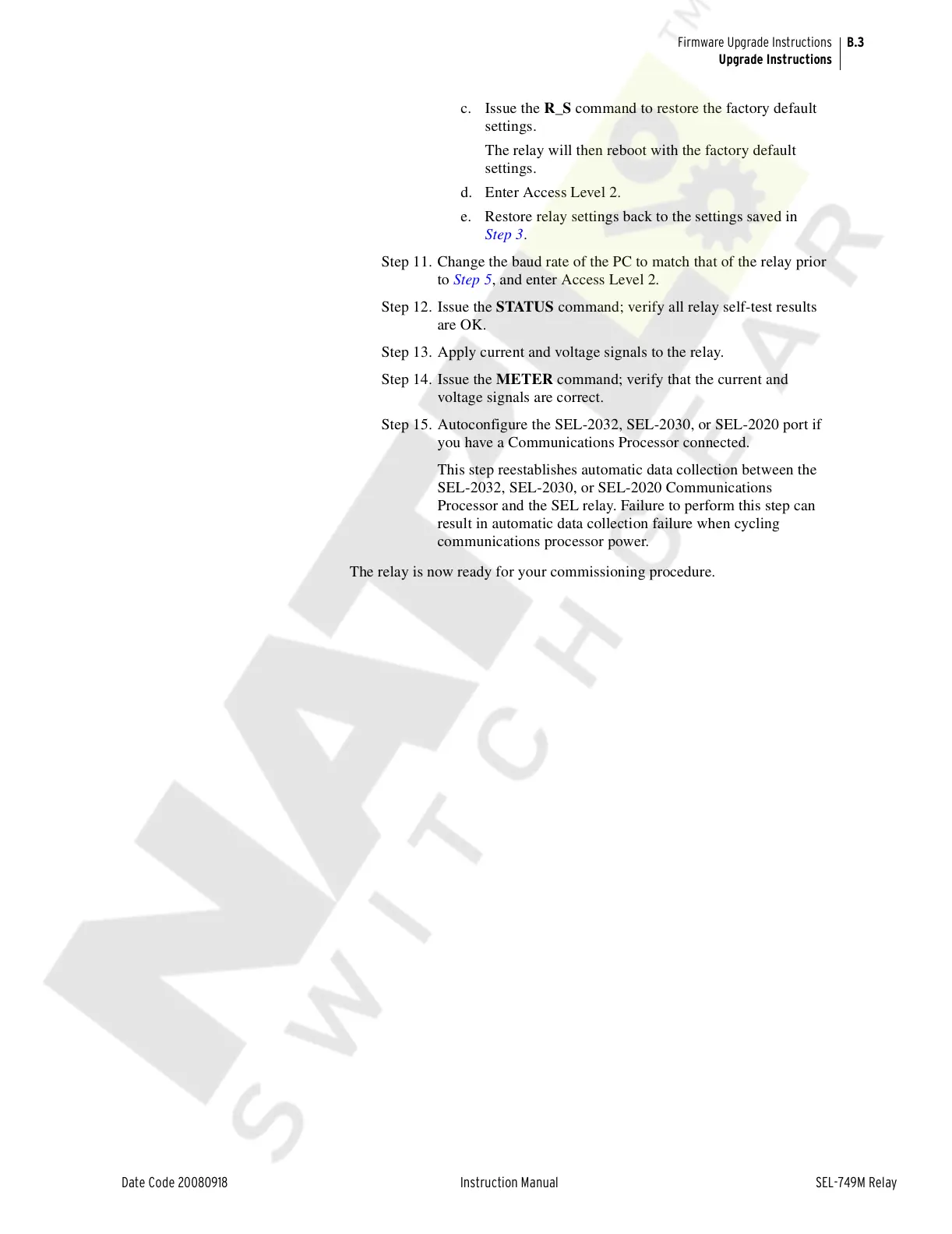 Processor and the SEL relay. Failure to perform this step can