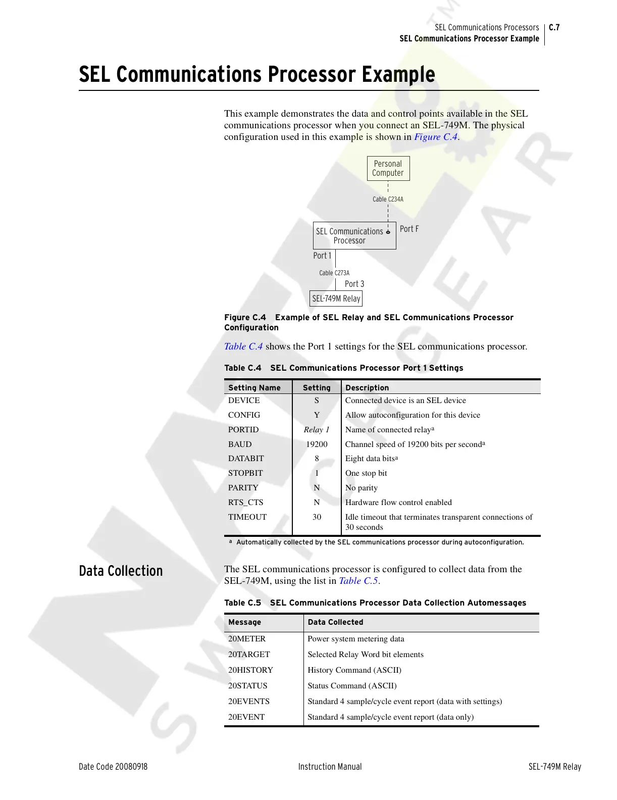 Table C.4 SEL Communications Processor Port 1 Settings
