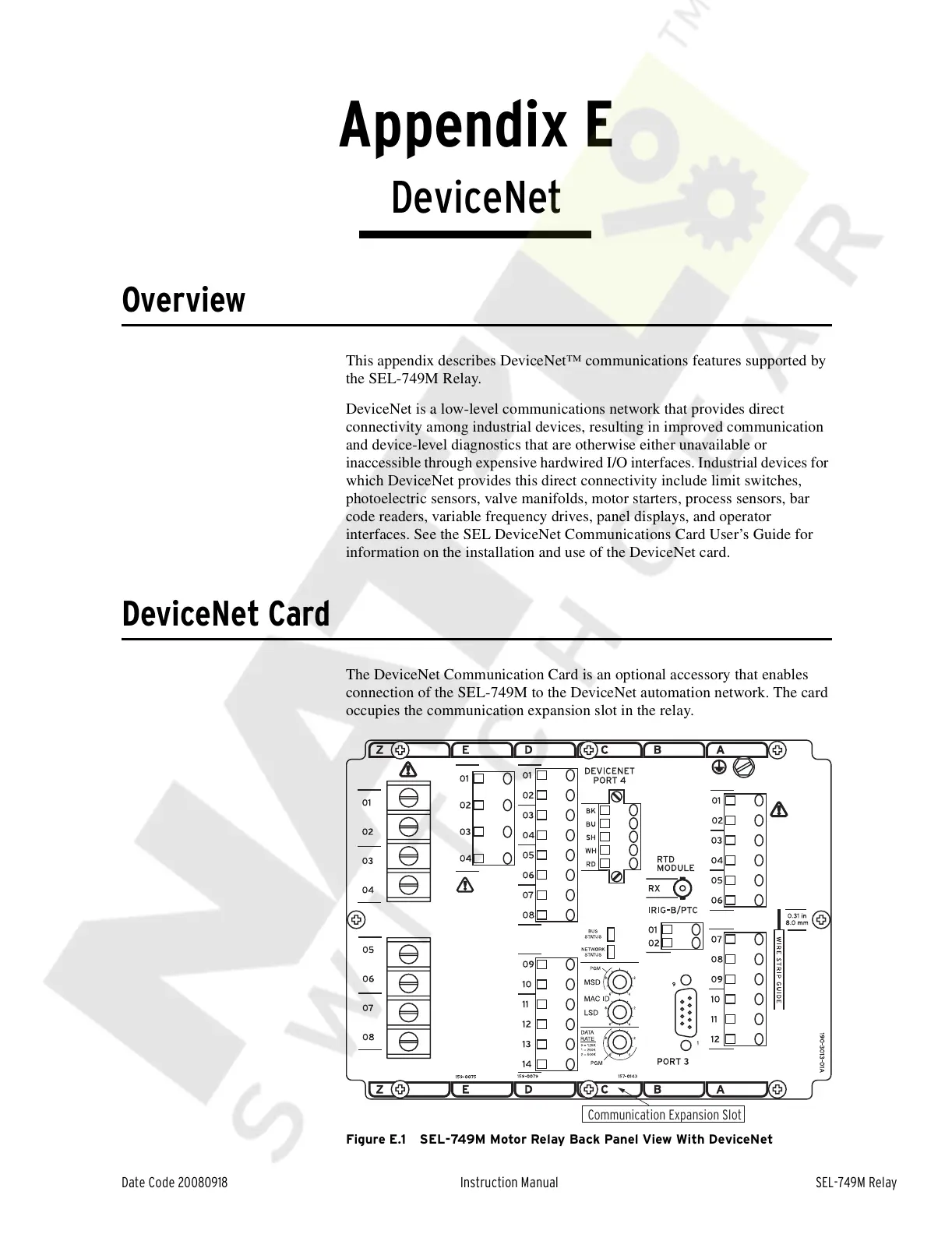 interfaces. See the SEL DeviceNet Communications Card User’s Guide for