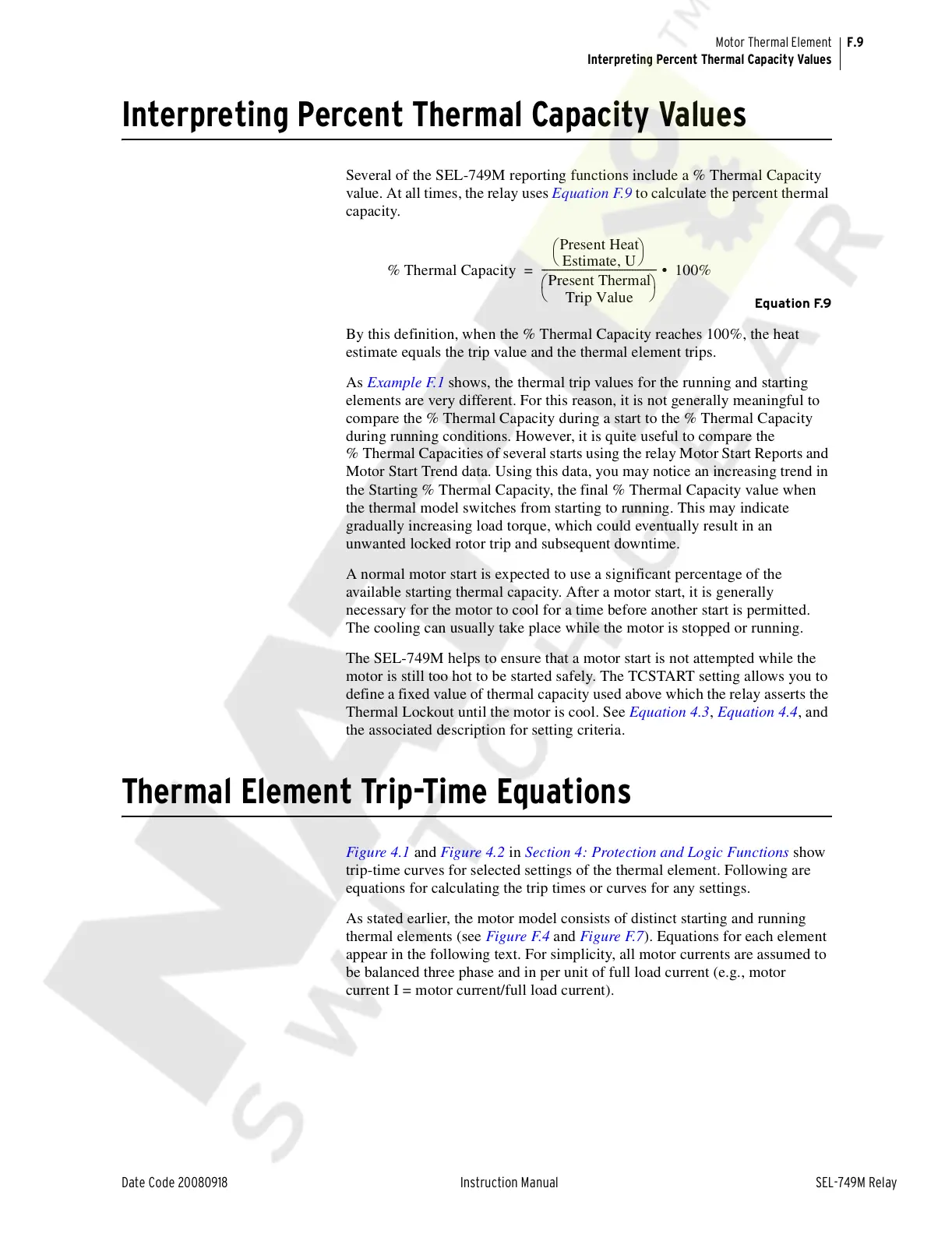 value. At all times, the relay uses Equation F.9 to calculate the percent thermal