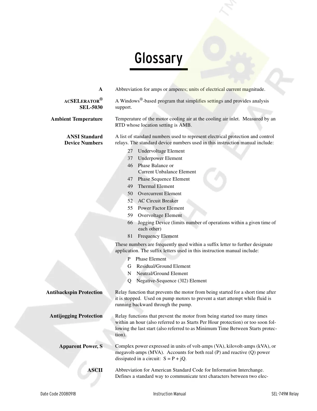 relays. The standard device numbers used in this instruction manual include: