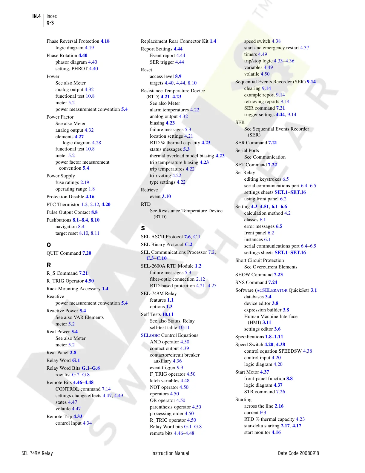 SEL-749M Relay Instruction ManuaI Date Code 20080918