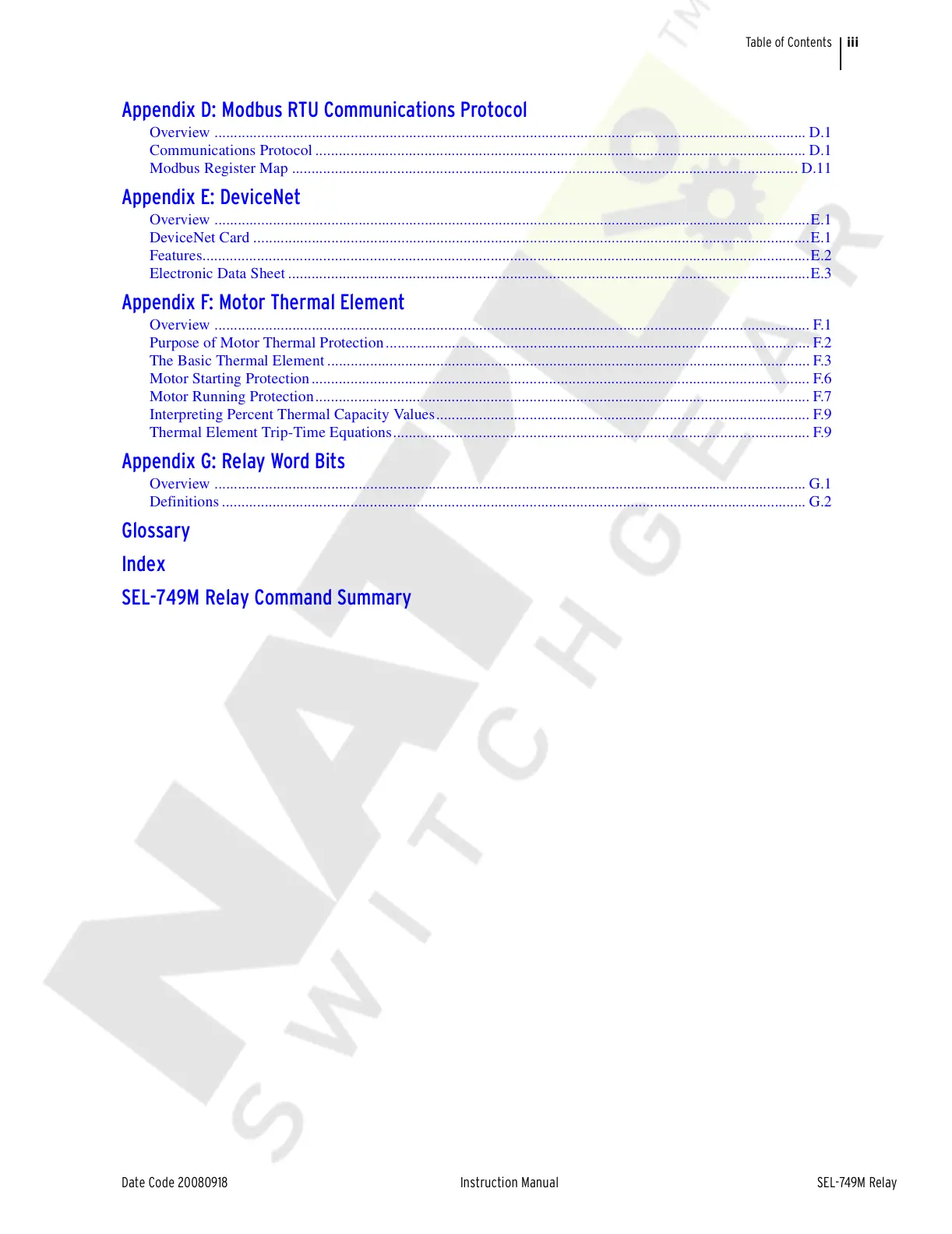 Motor Running Protection............................................................................................................................... F.7
