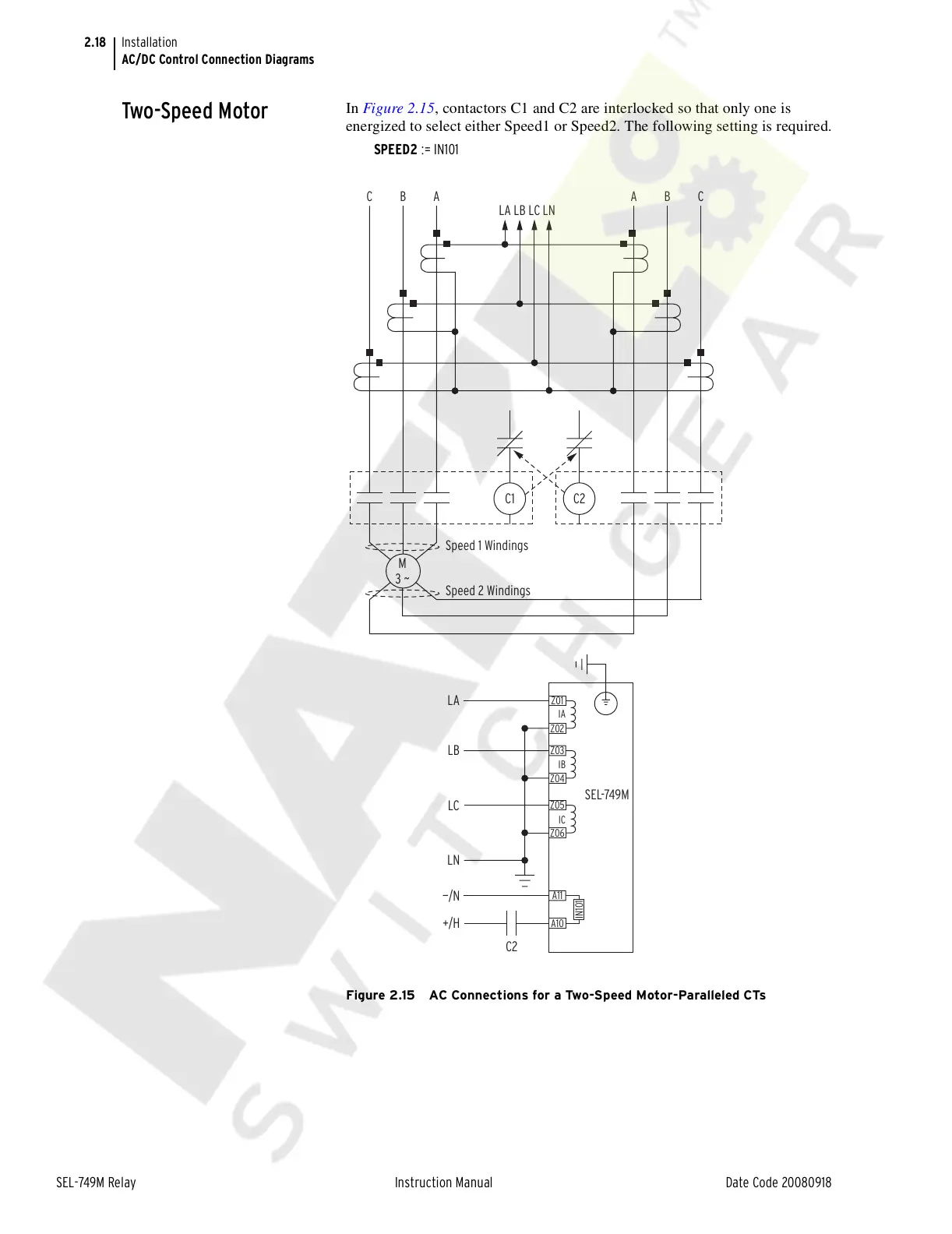 Figure 2.15 AC Connections for a Two-Speed Motor-Paralleled CTs