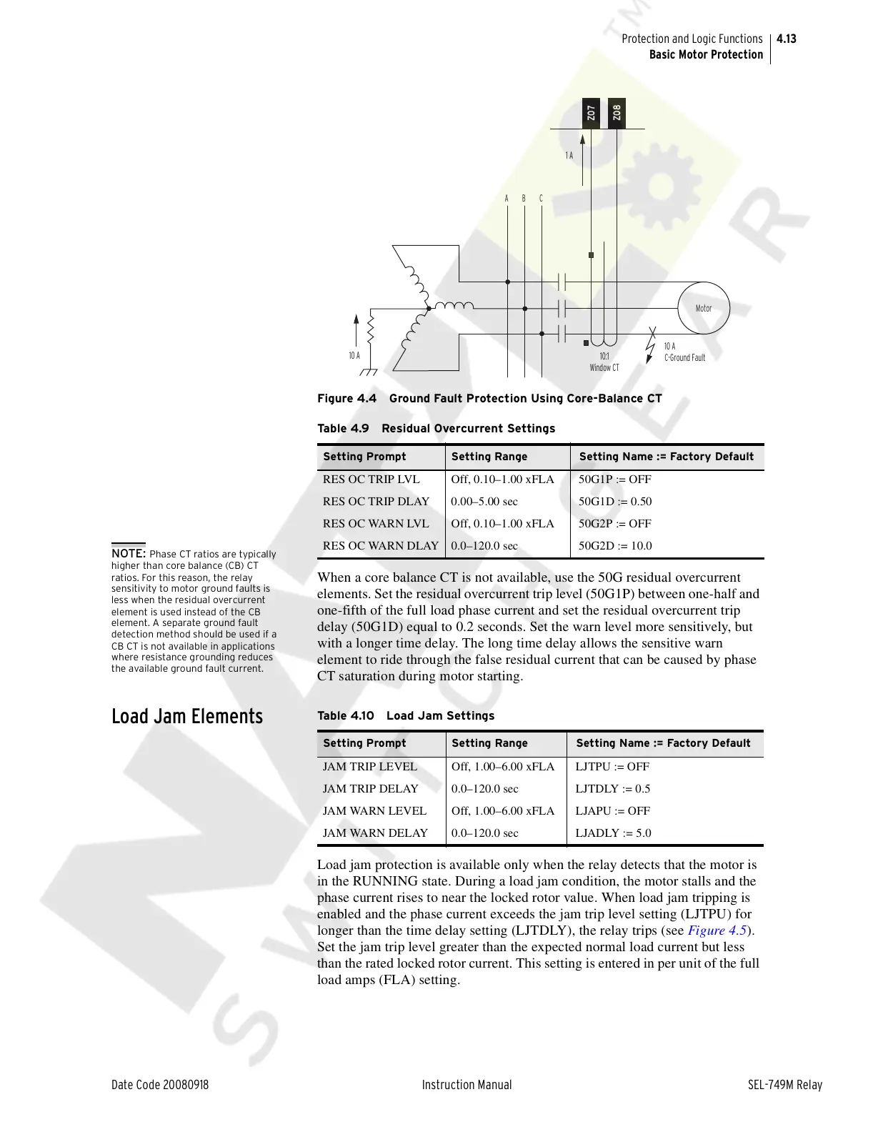 NOTE: Phase CT ratios are typically