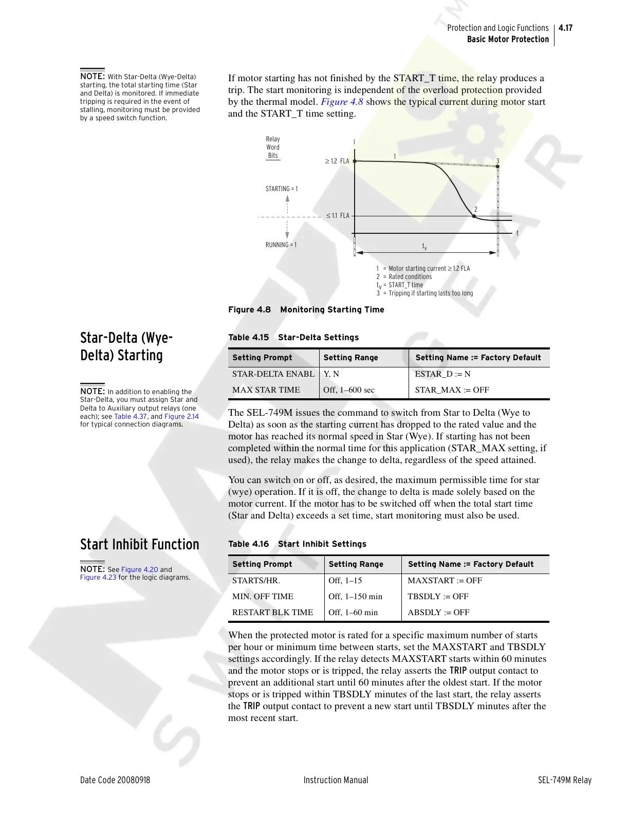 (Star and Delta) exceeds a set time, start monitoring must also be used.