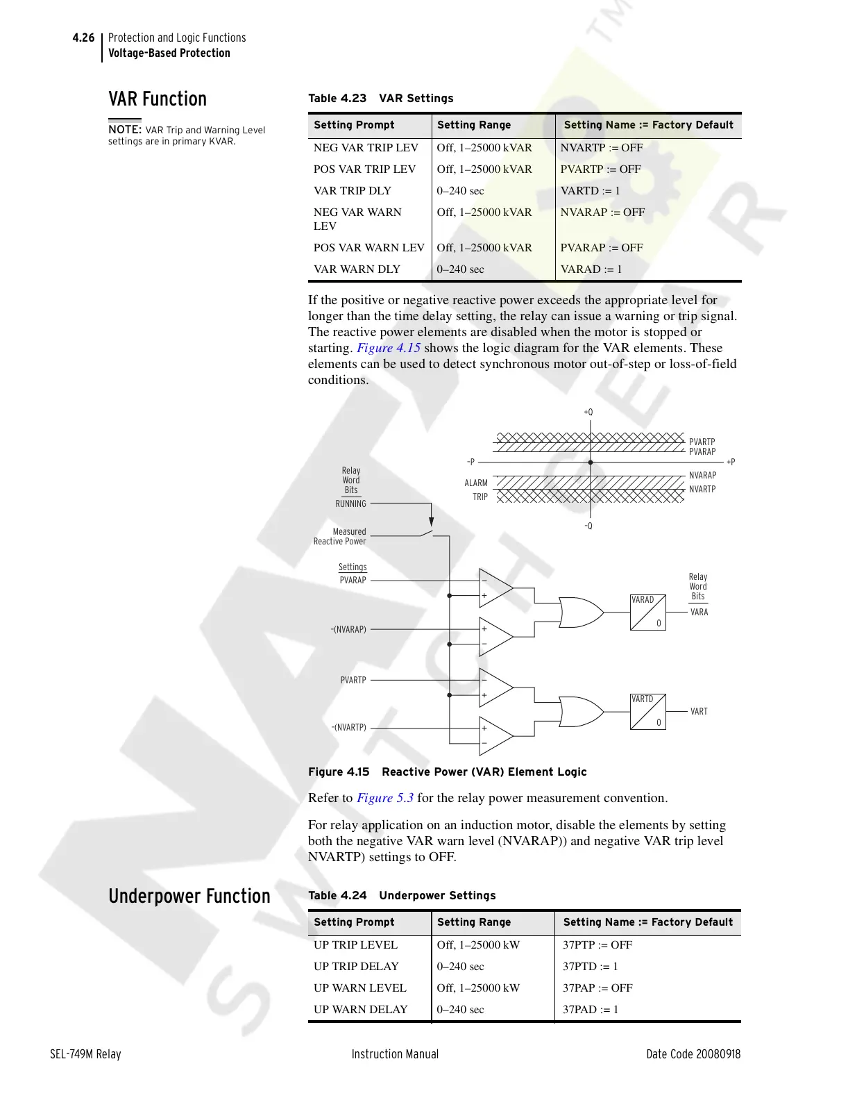 Figure 4.15 Reactive Power (VAR) Element Logic
