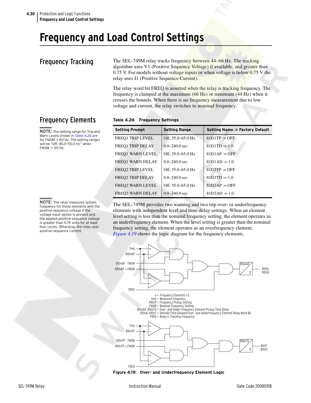 Figure 4.19 shows the logic diagram for the frequency elements.