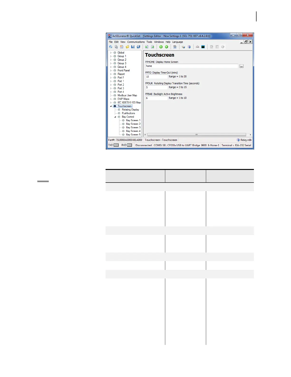Table 9.5 Touchscreen Settings (Sheet 1 of 2)