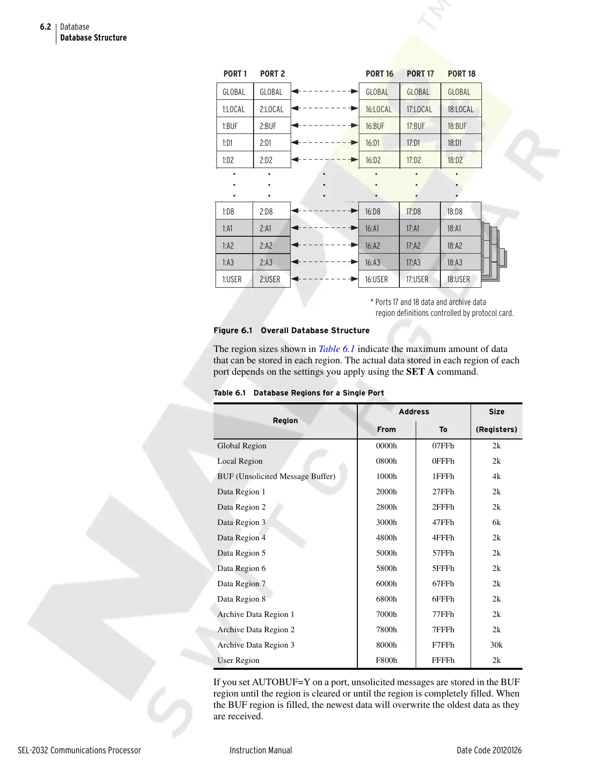 Table 6.1 Database Regions for a Single Port