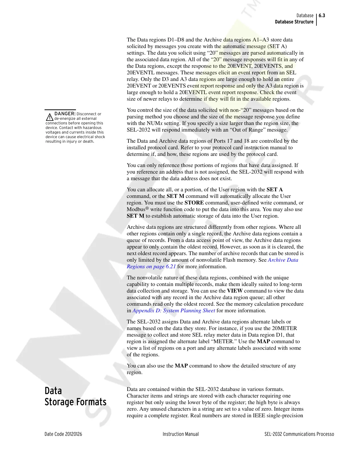 The SEL-2032 assigns Data and Archive data regions alternate labels or