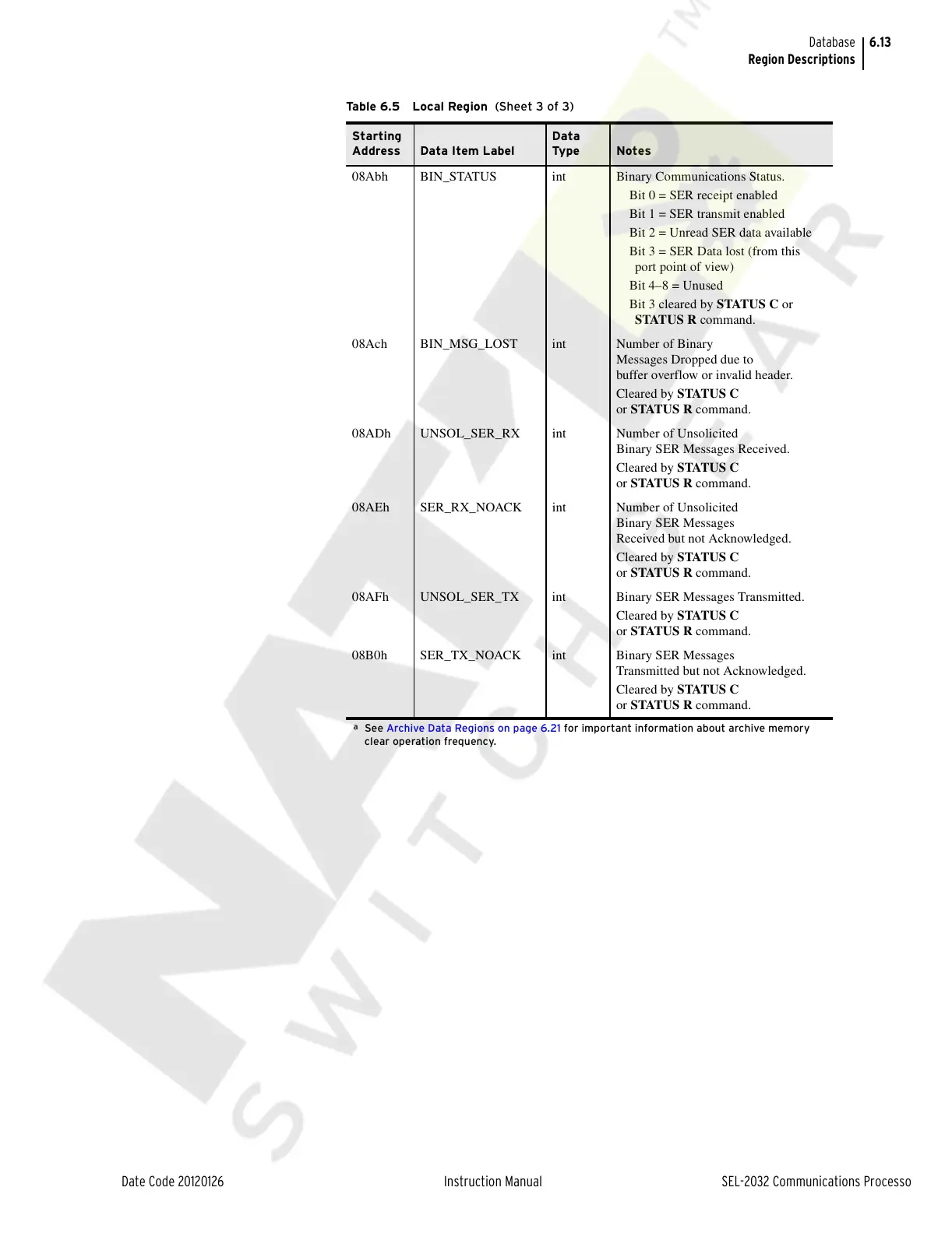 See Archive Data Regions on page 6.21 for important information about archive memory