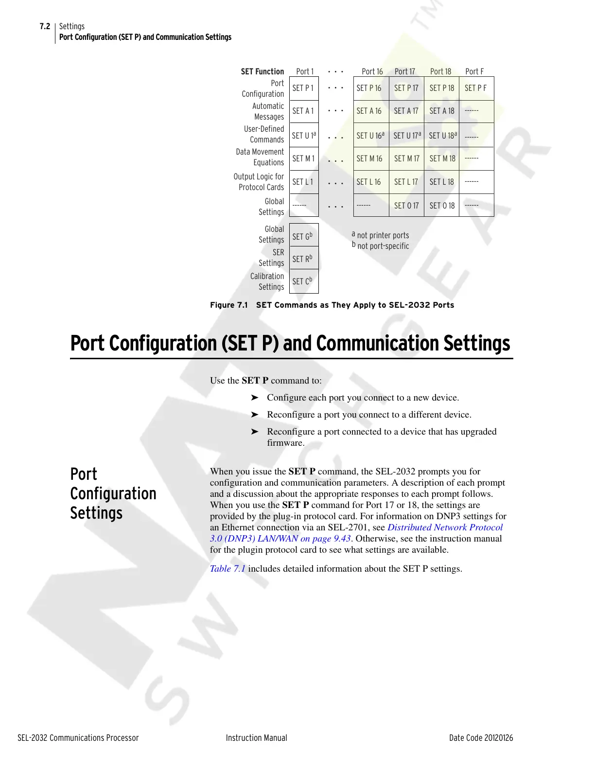 Figure 7.1 SET Commands as They Apply to SEL-2032 Ports