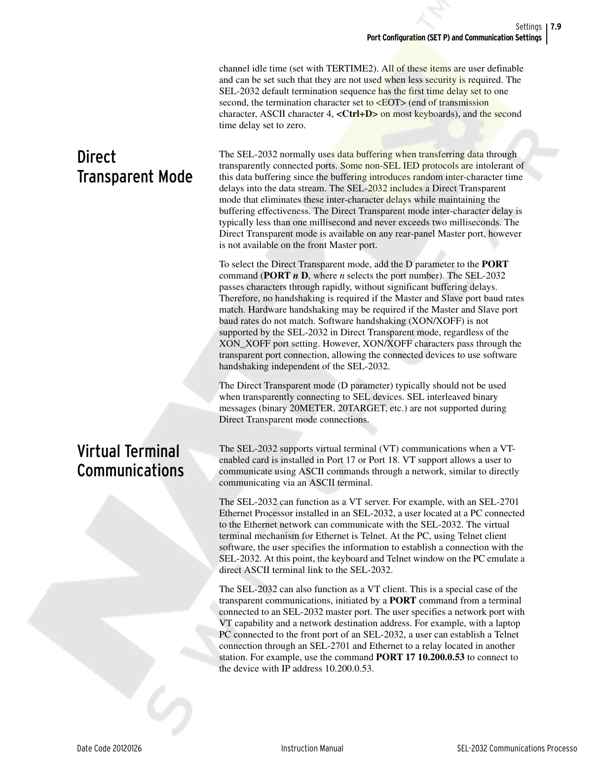 delays into the data stream. The SEL-2032 includes a Direct Transparent
