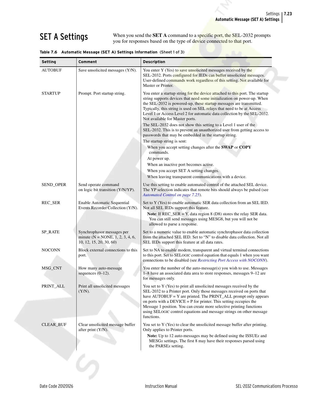 SEL-2032. Ports configured for IEDs can buffer unsolicited messages.