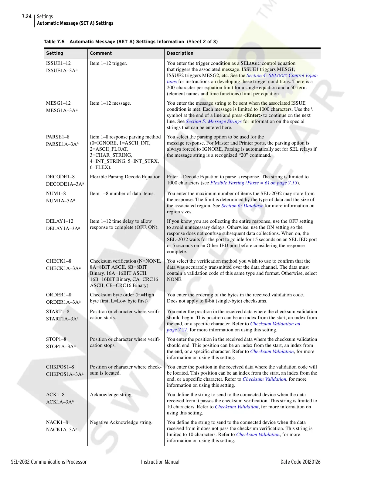 Table 7.6 Automatic Message (SET A) Settings Information (Sheet 2 of 3)