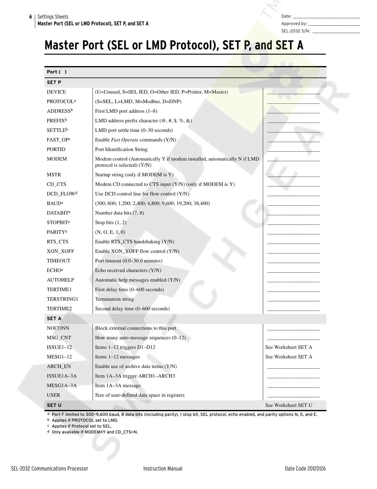 Master Port (SEL or LMD Protocol), SET P, and SET A