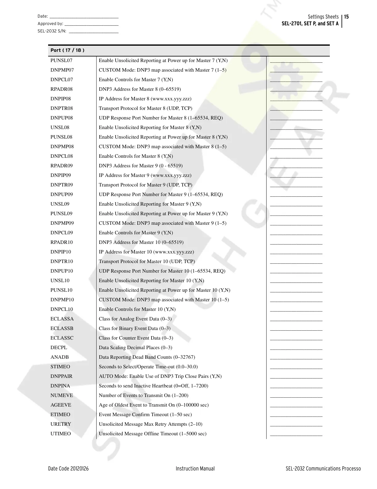 DNPUP10 UDP Response Port Number for Master 10 (1–65534, REQ) ____________________