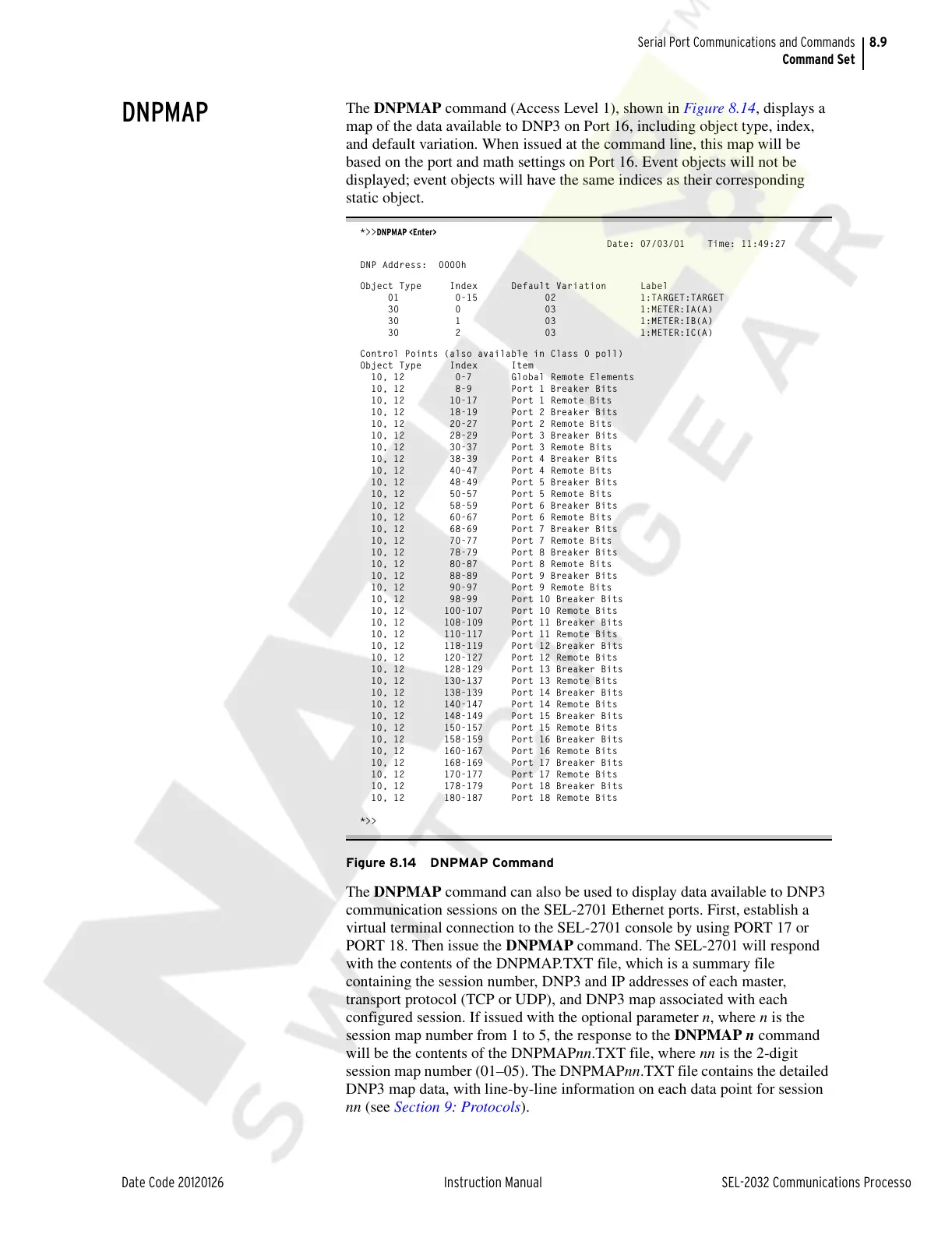 The DNPMAP command (Access Level 1), shown in Figure 8.14, displays a