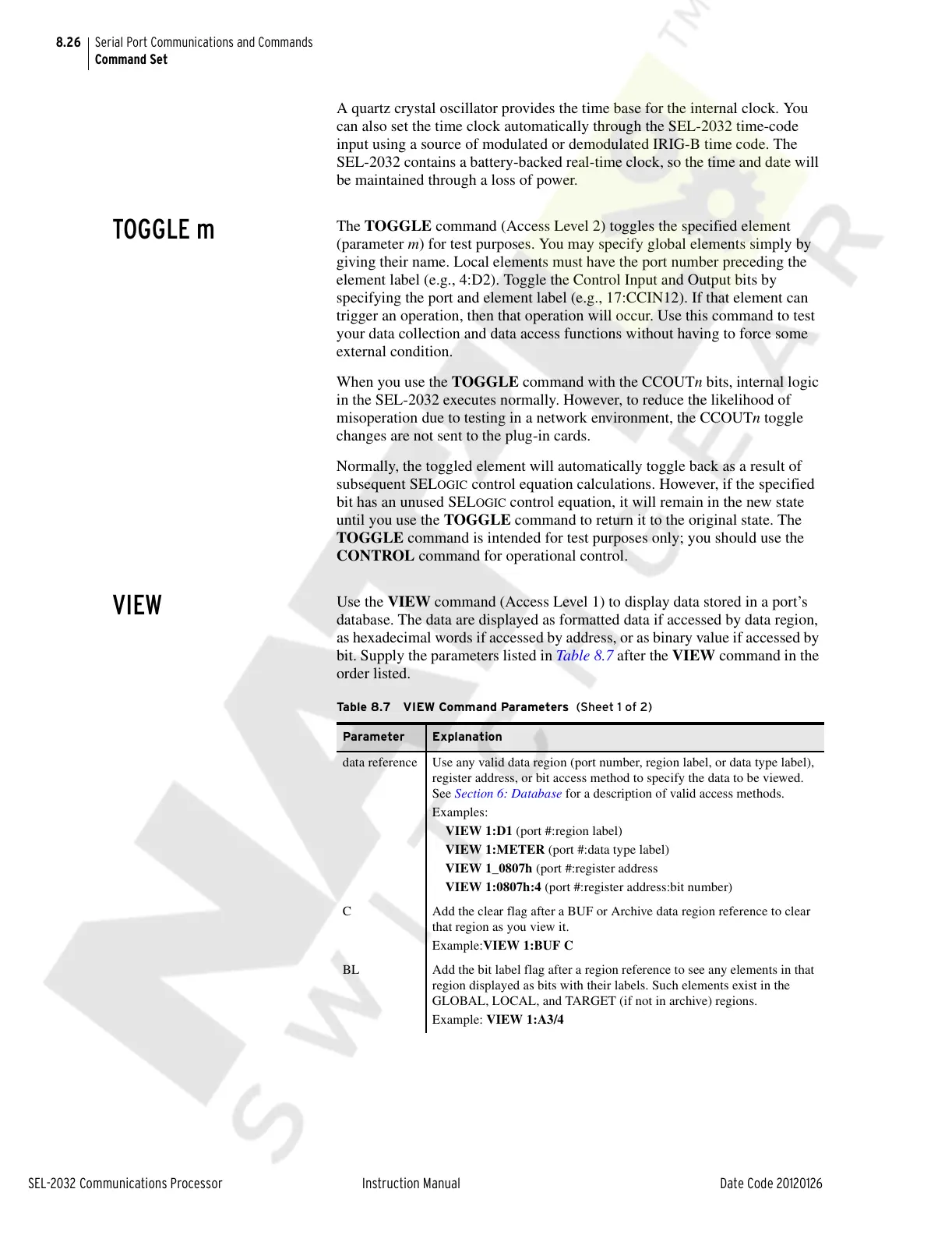 bit. Supply the parameters listed in Table 8.7 after the VIEW command in the