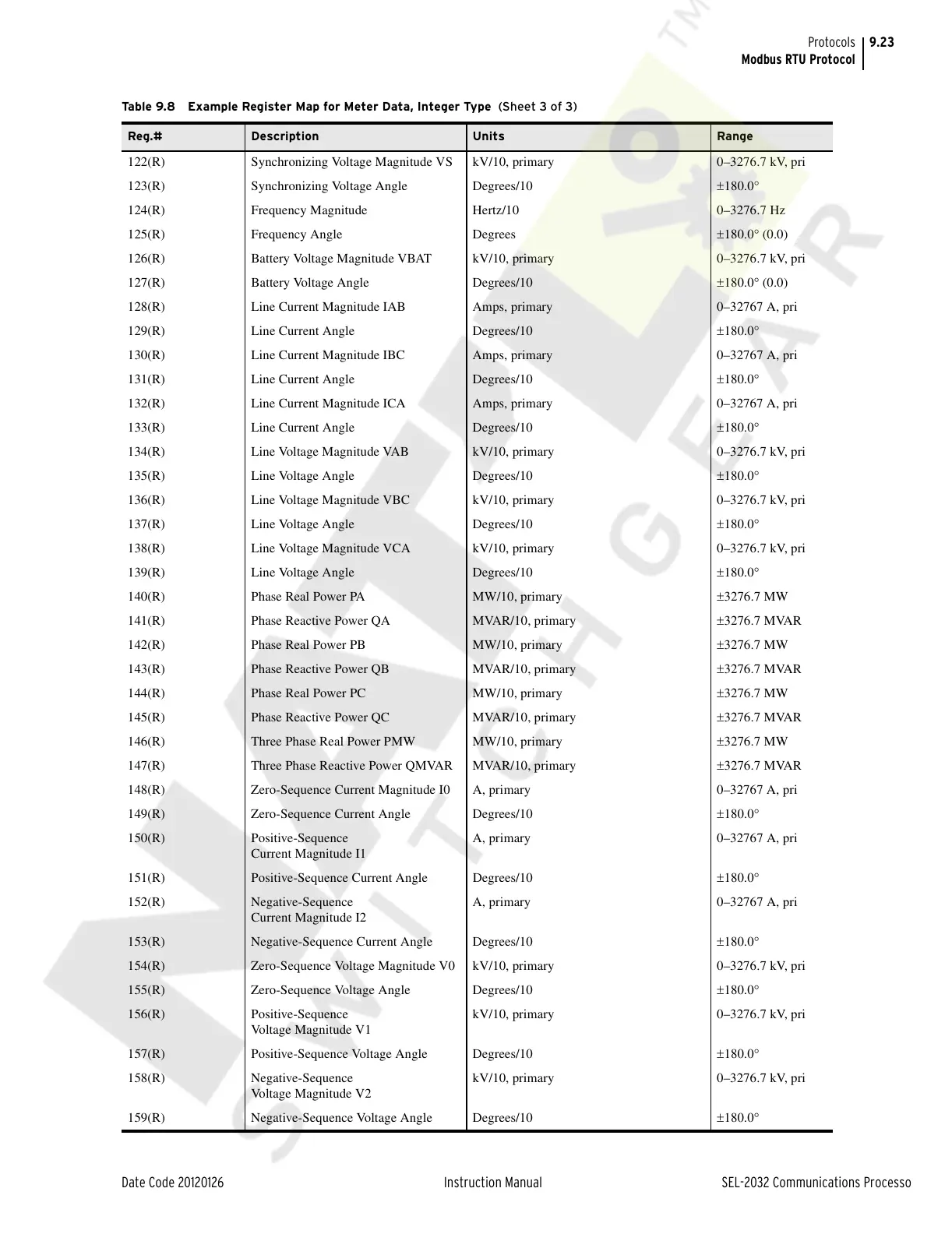 Table 9.8 Example Register Map for Meter Data, Integer Type (Sheet 3 of 3)