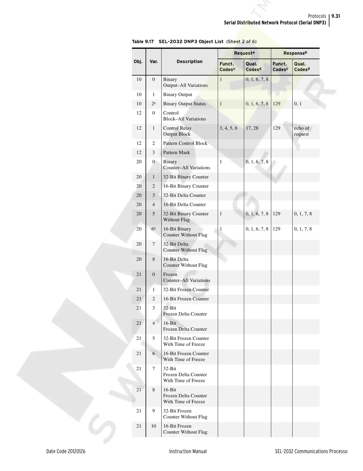 Tab l e 9. 17 S EL - 20 3 2 DNP3 Object List (Sheet 2 of 6)