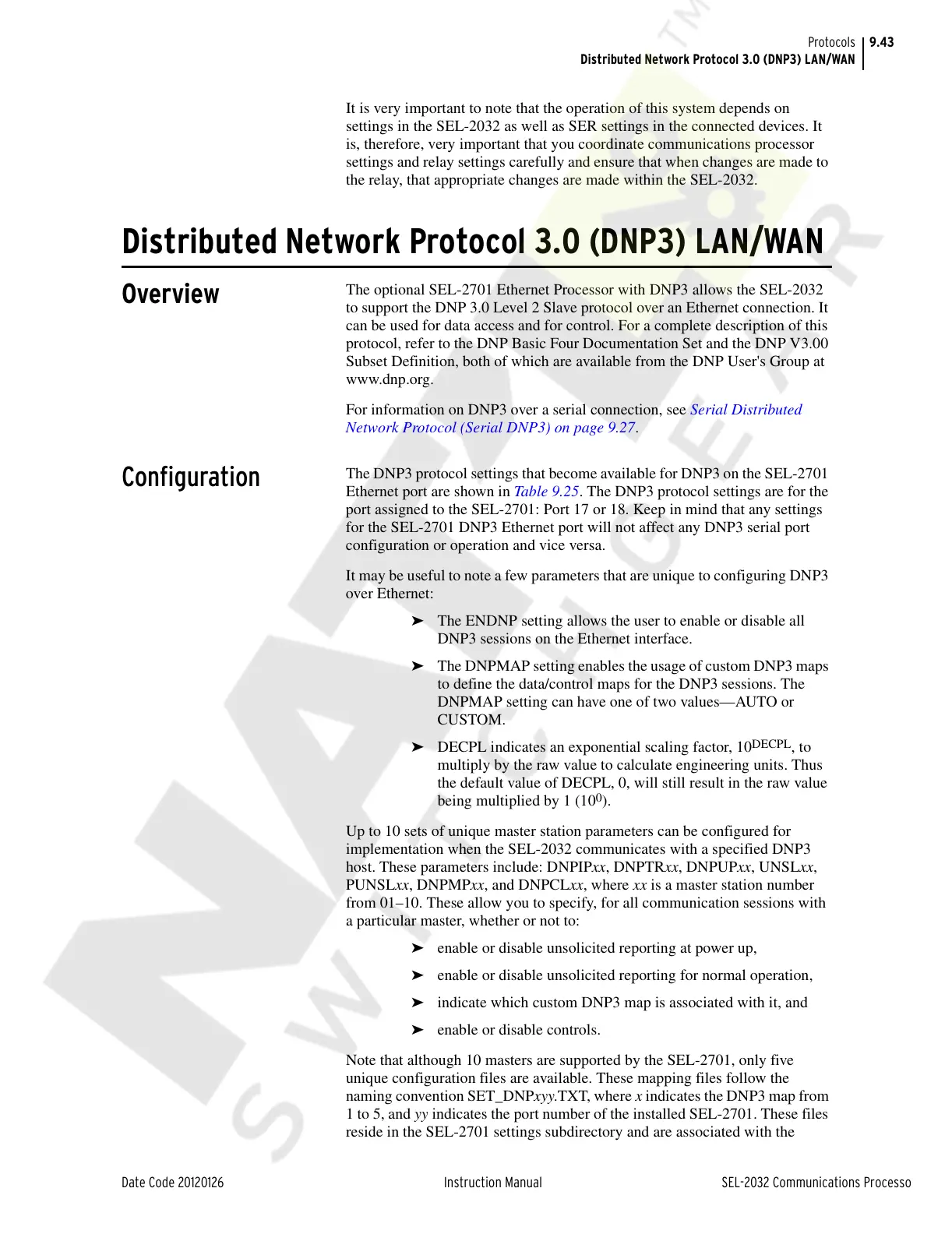 protocol, refer to the DNP Basic Four Documentation Set and the DNP V3.00