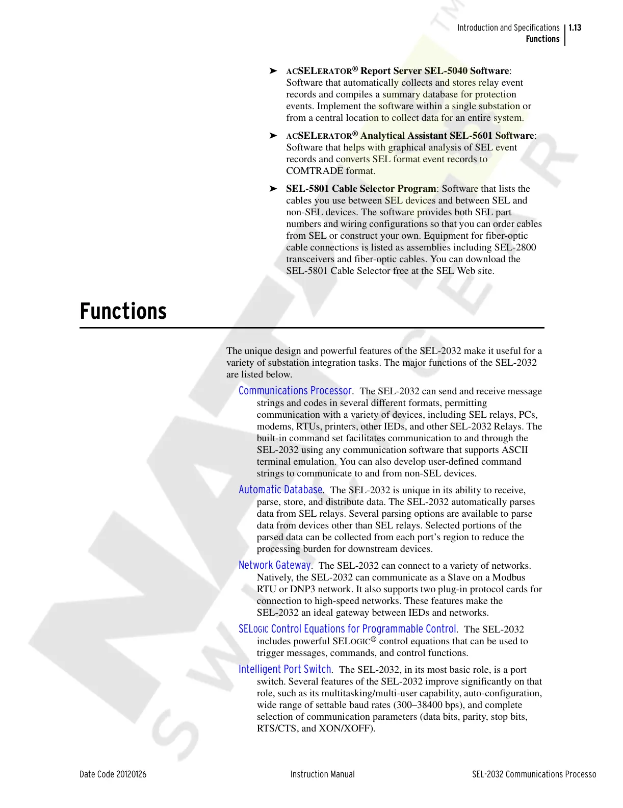 Date Code 20120126 Instruction Manual SEL-2032 Communications Processor
