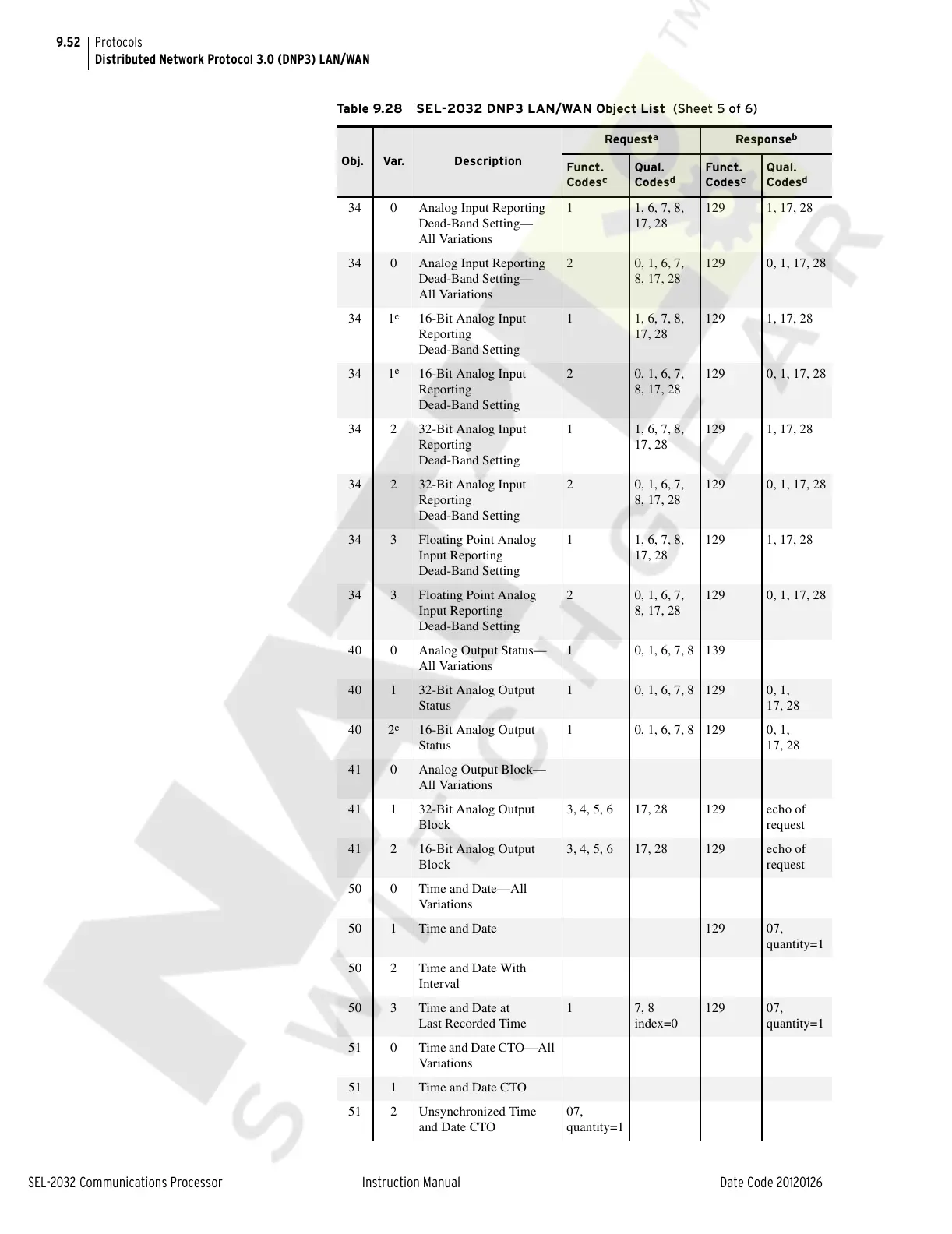 DNP3 LAN/WAN Object List (Sheet 5 of 6)
