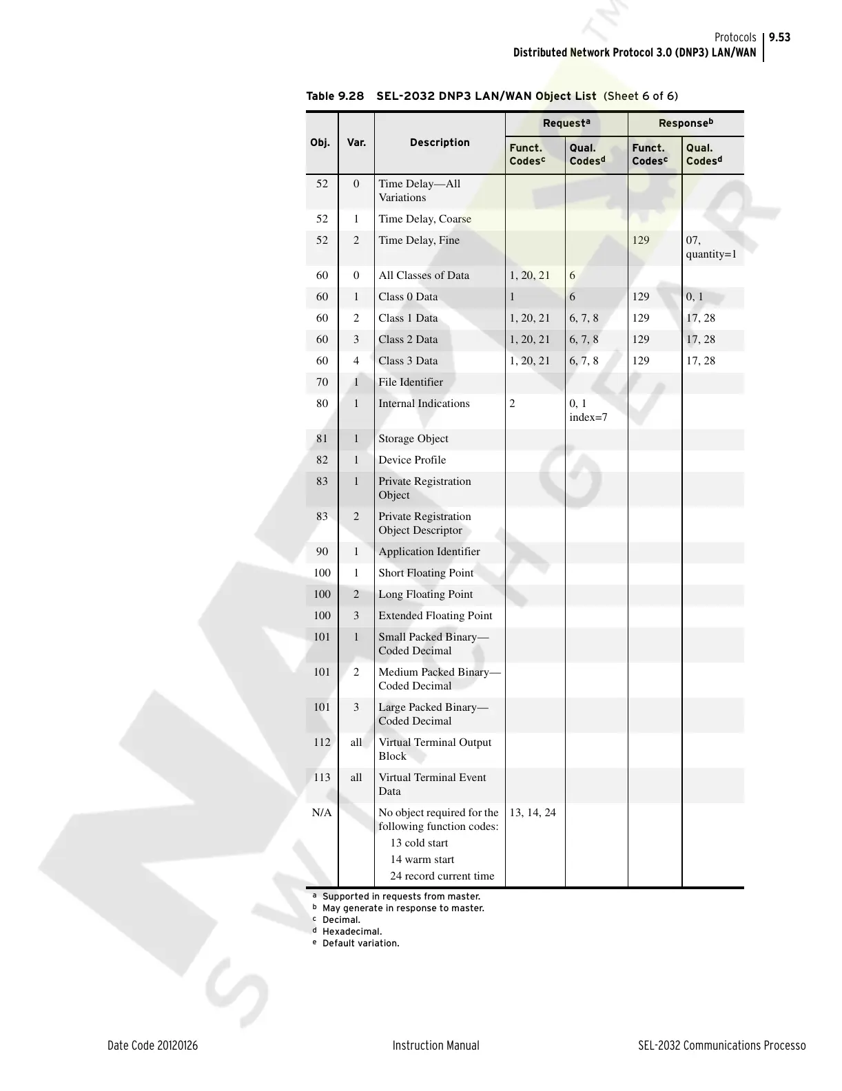 Ta b le 9.2 8 S EL - 203 2 DNP3 LAN/WAN Object List (Sheet 6 of 6)