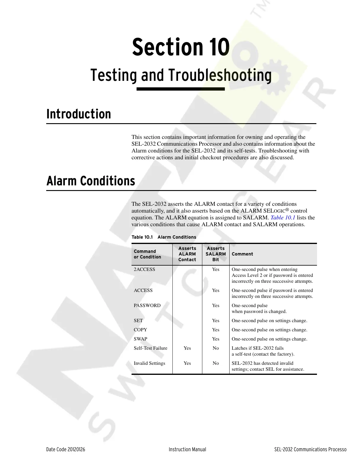 Table 10.1 Alarm Conditions