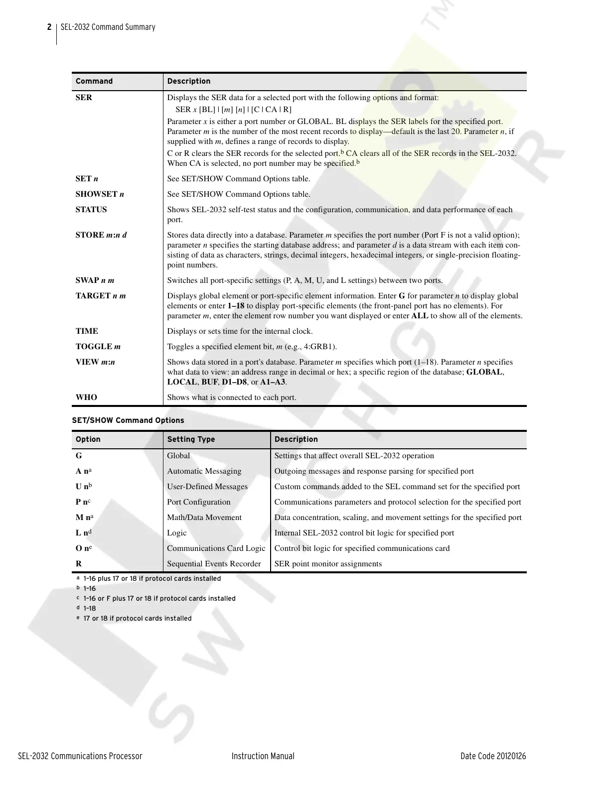 SEL-2032 Command Summary