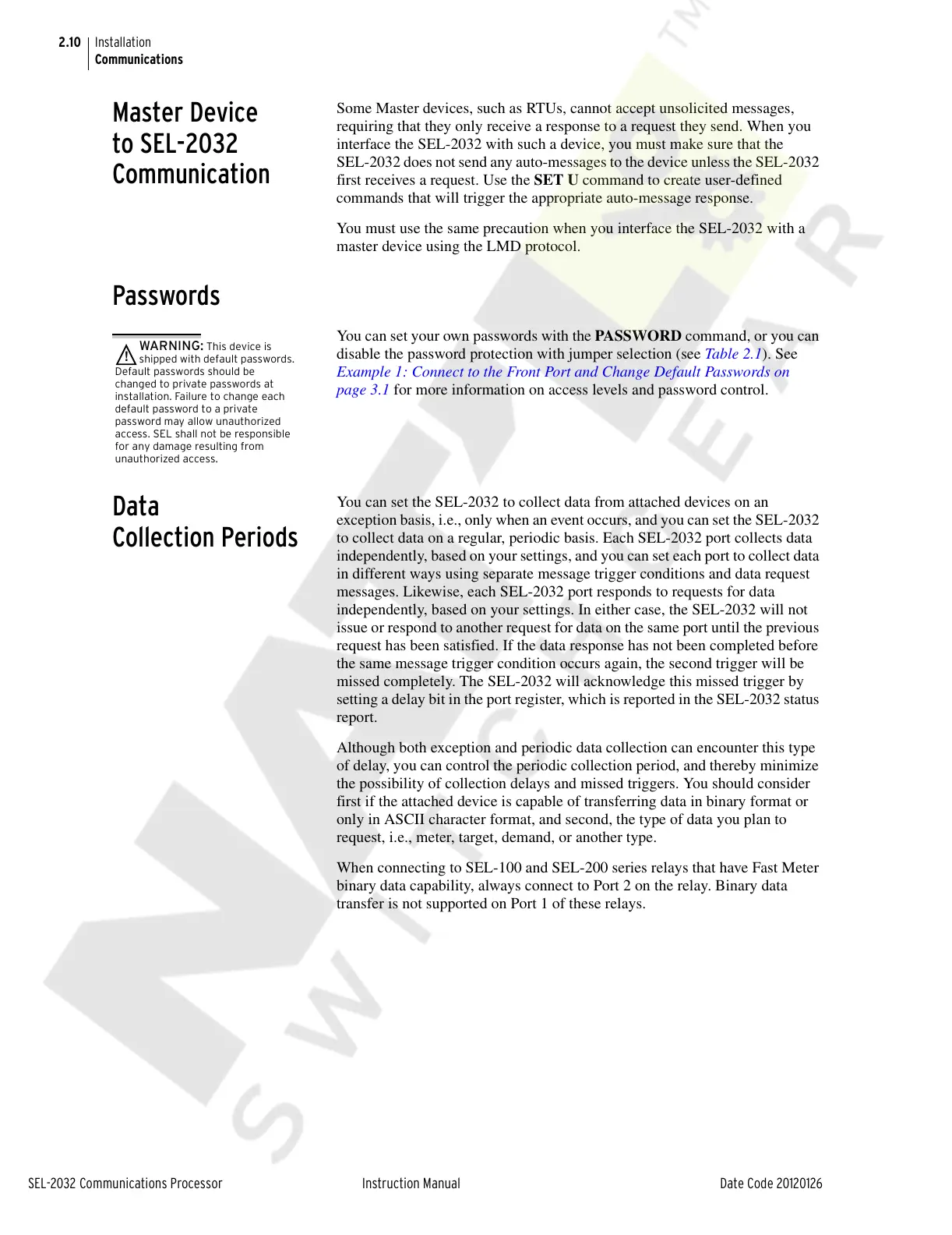SEL-2032 Communications Processor Instruction Manual Date Code 20120126