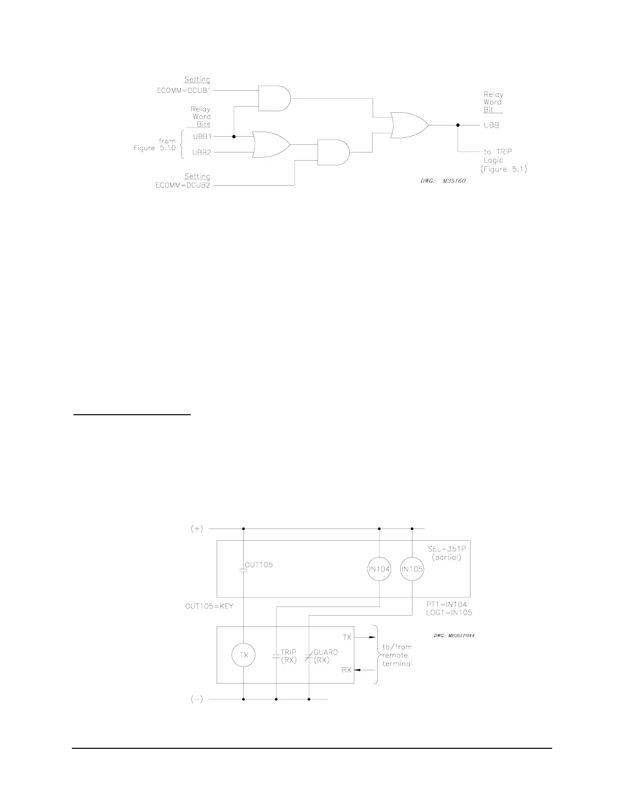 ECOMM = DCUB1 or DCUB2. Relay Word bit PTRX is the permissive trip receive input into
