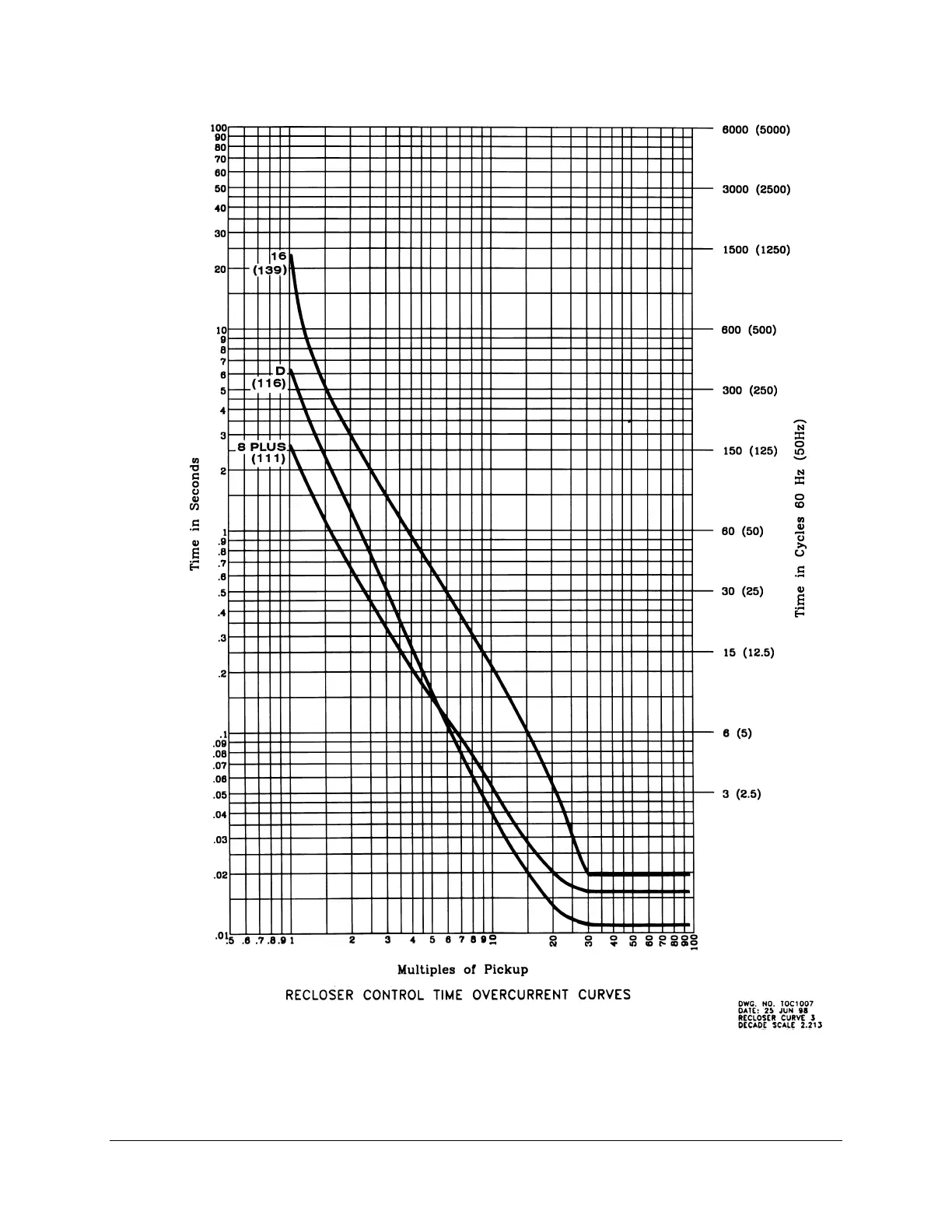 Figure 9.13: Recloser Control Response Curves D, 8PLUS, and 16
