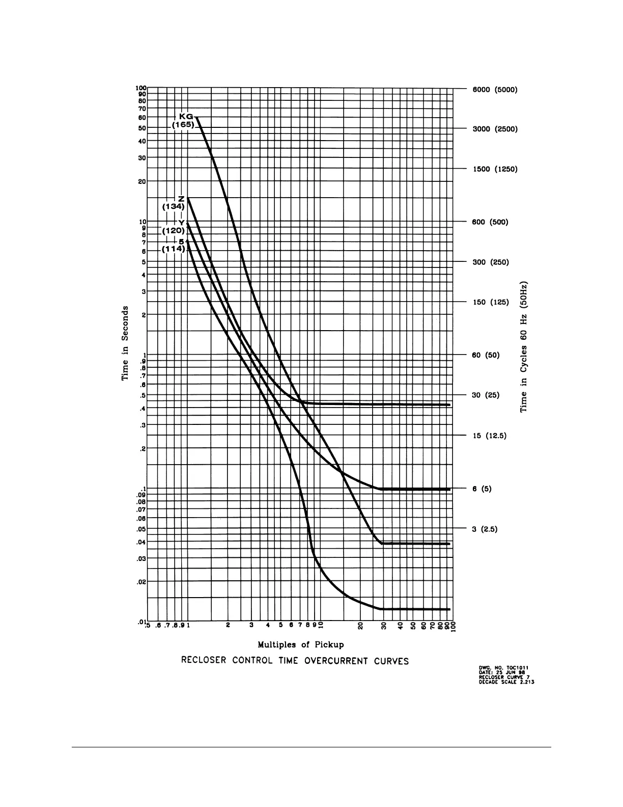 Figure 9.17: Recloser Control Response Curves KG, Y, Z, and 5
