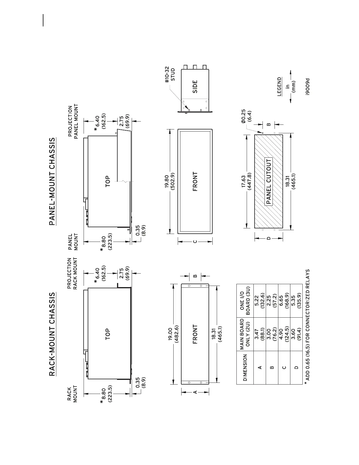 Figure 2.1 Relay Dimensions for Rack-Mount and Panel-Mount Models