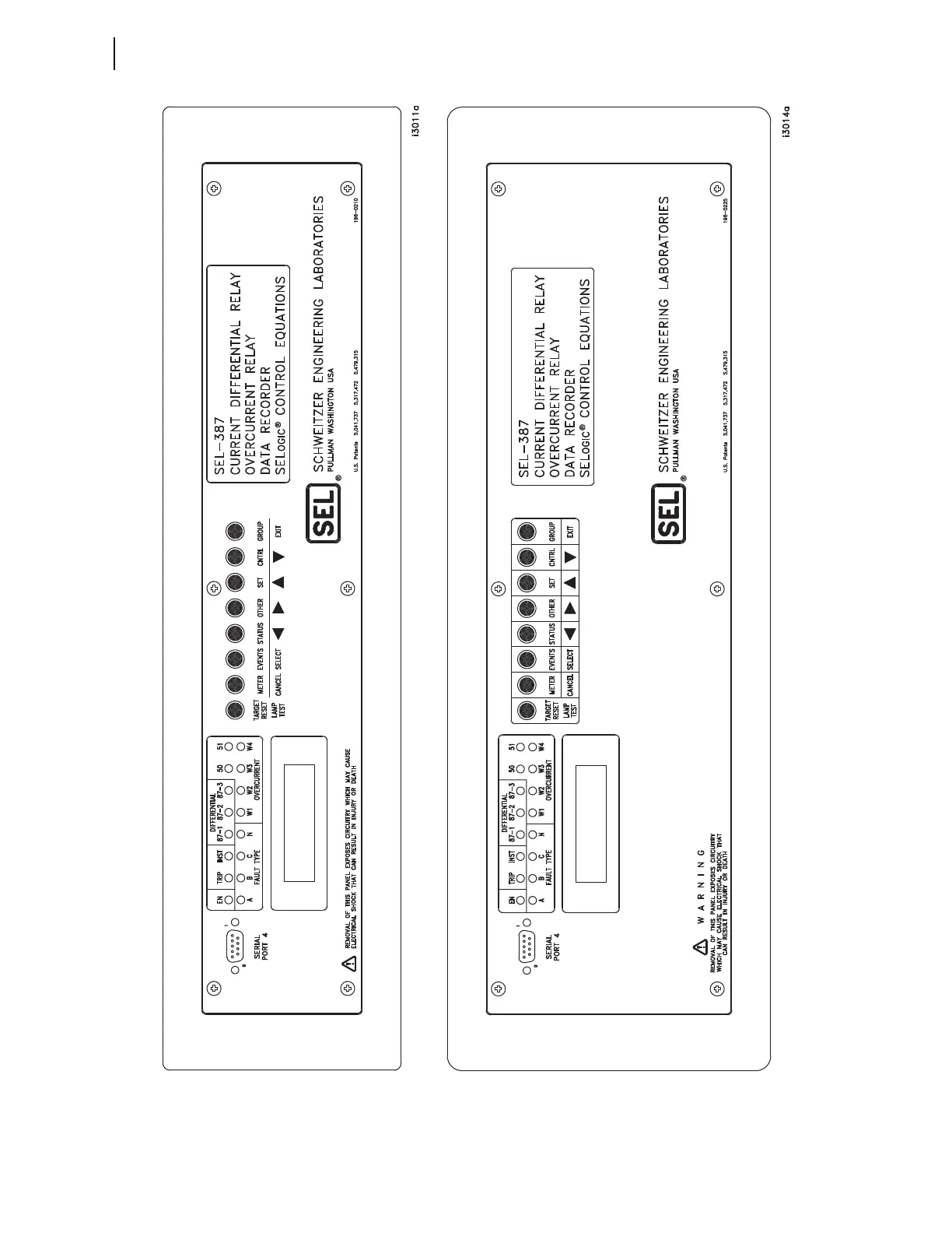 Schweitzer Engineering SEL-387-0 - Figure 2.3 Front-Panel Drawings-Models 0387 X0 Xxx3 and 0387 X1 Xxx3