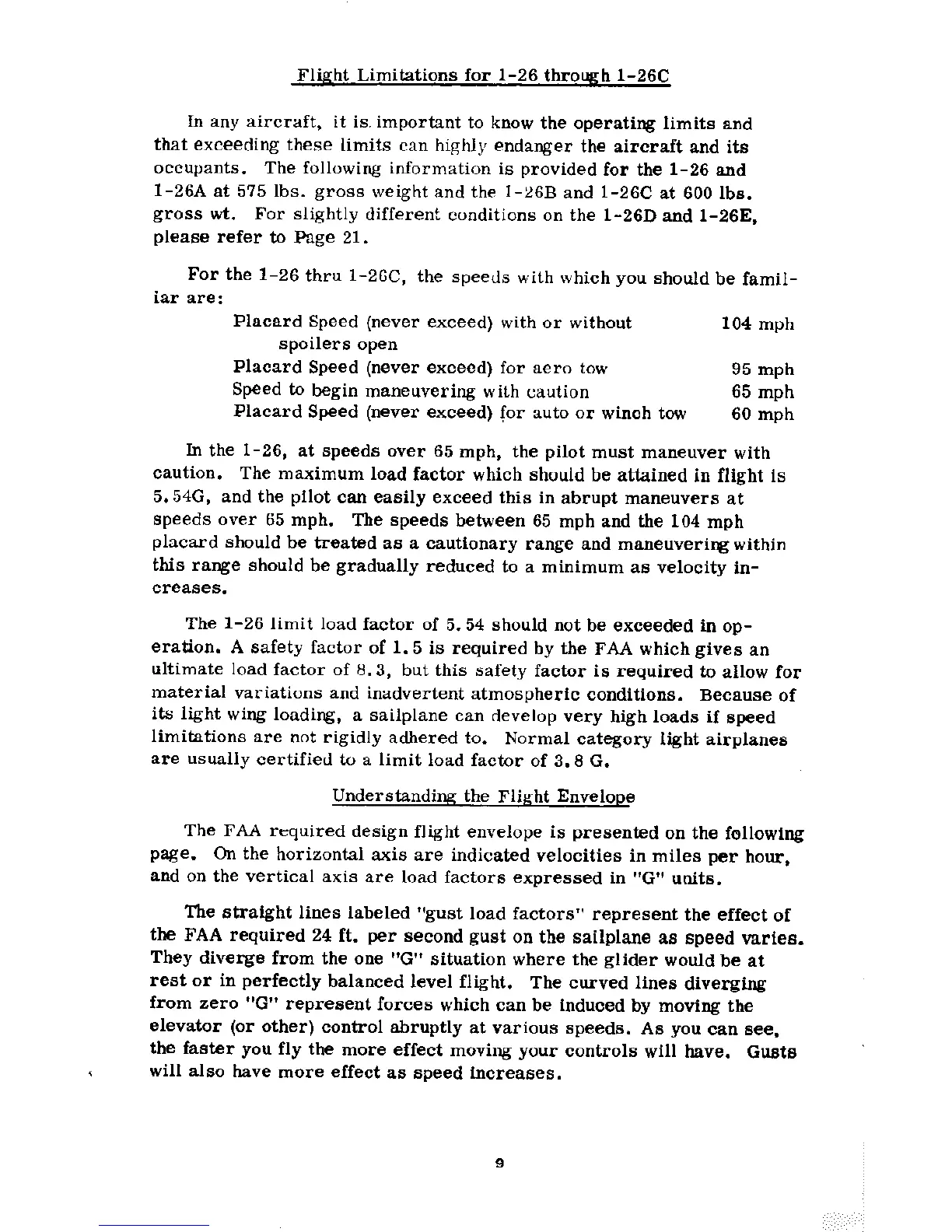 Schweizer 1-26 - Flight Limitations; Placard Speeds and Load Factors; Understanding the Flight Envelope