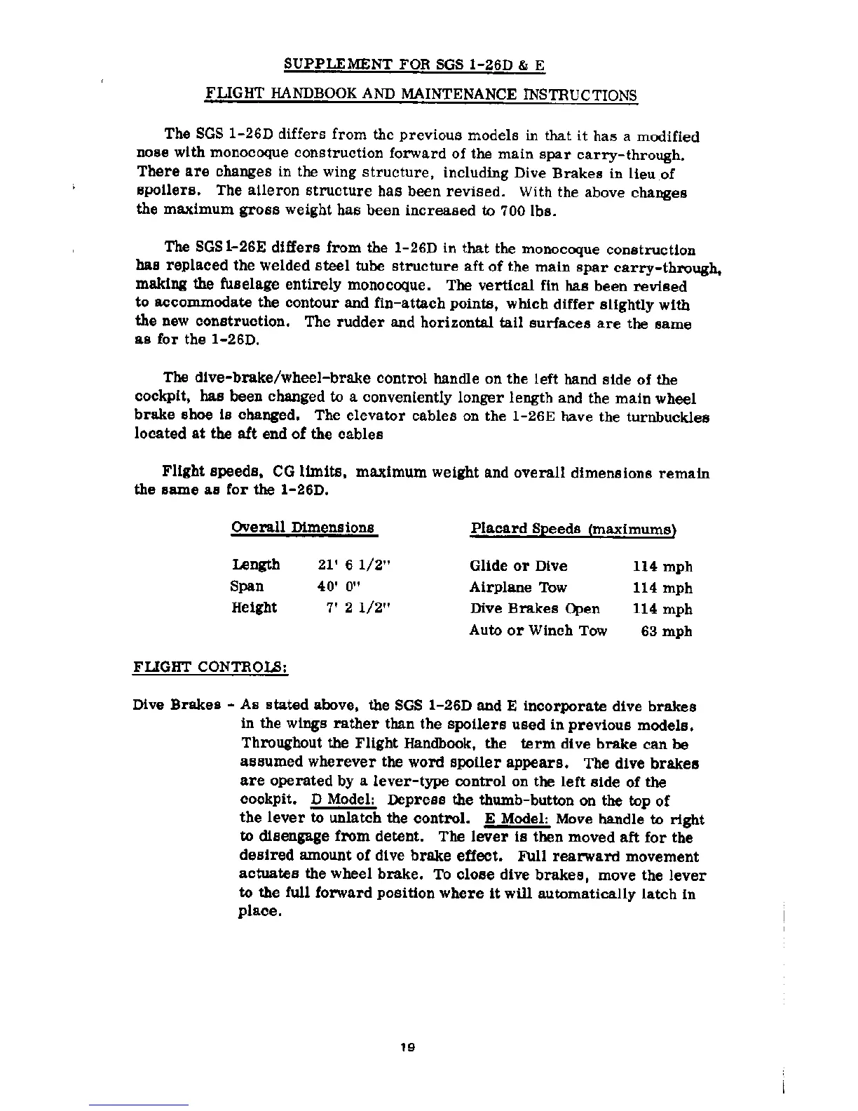 Schweizer 1-26 - Supplement for SGS 1-26 D & E; Model Differences and Updates; Flight Controls for D & E Models