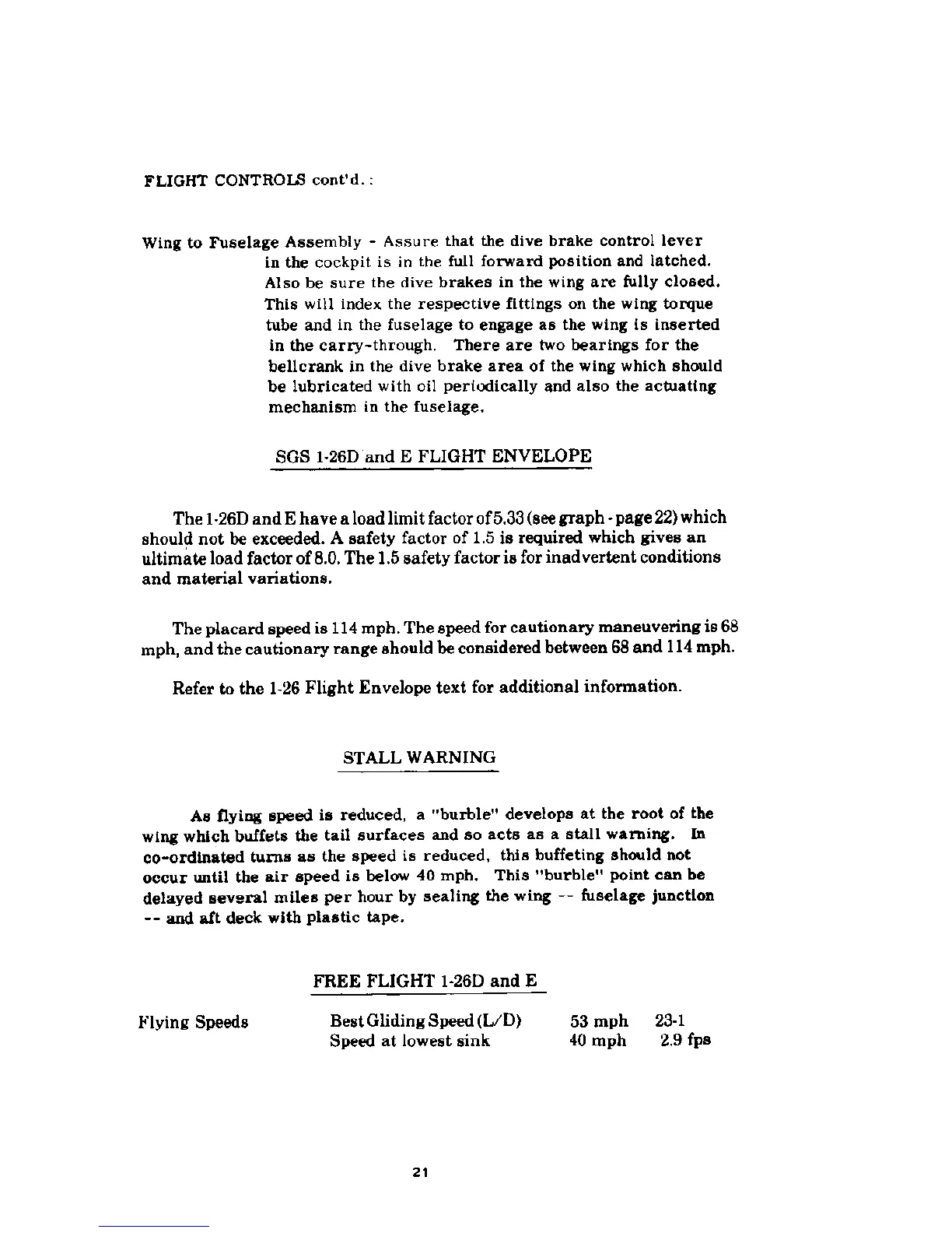 Schweizer 1-26 - SGS 1-26 D & E Flight Envelope; Stall Warning and Free Flight