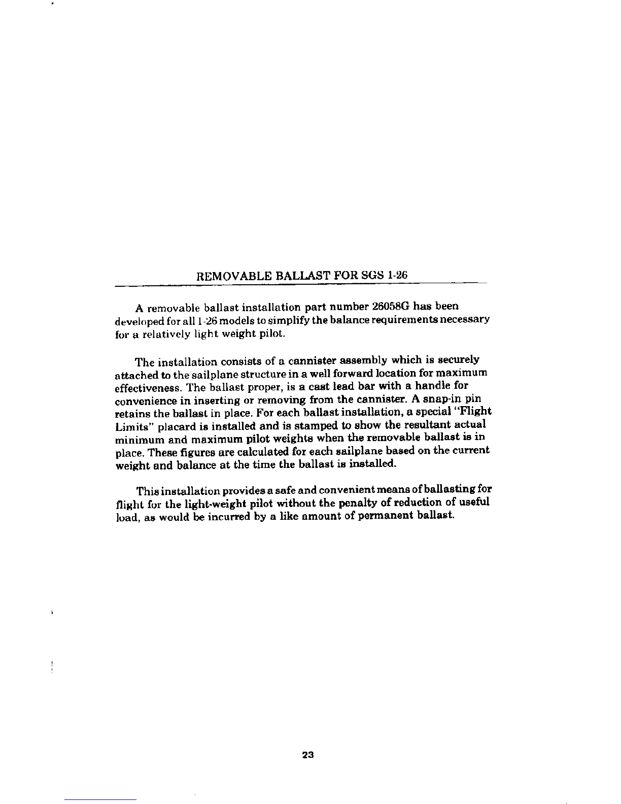 Schweizer 1-26 - Removable Ballast for SGS 1-26; Ballast Installation and Use