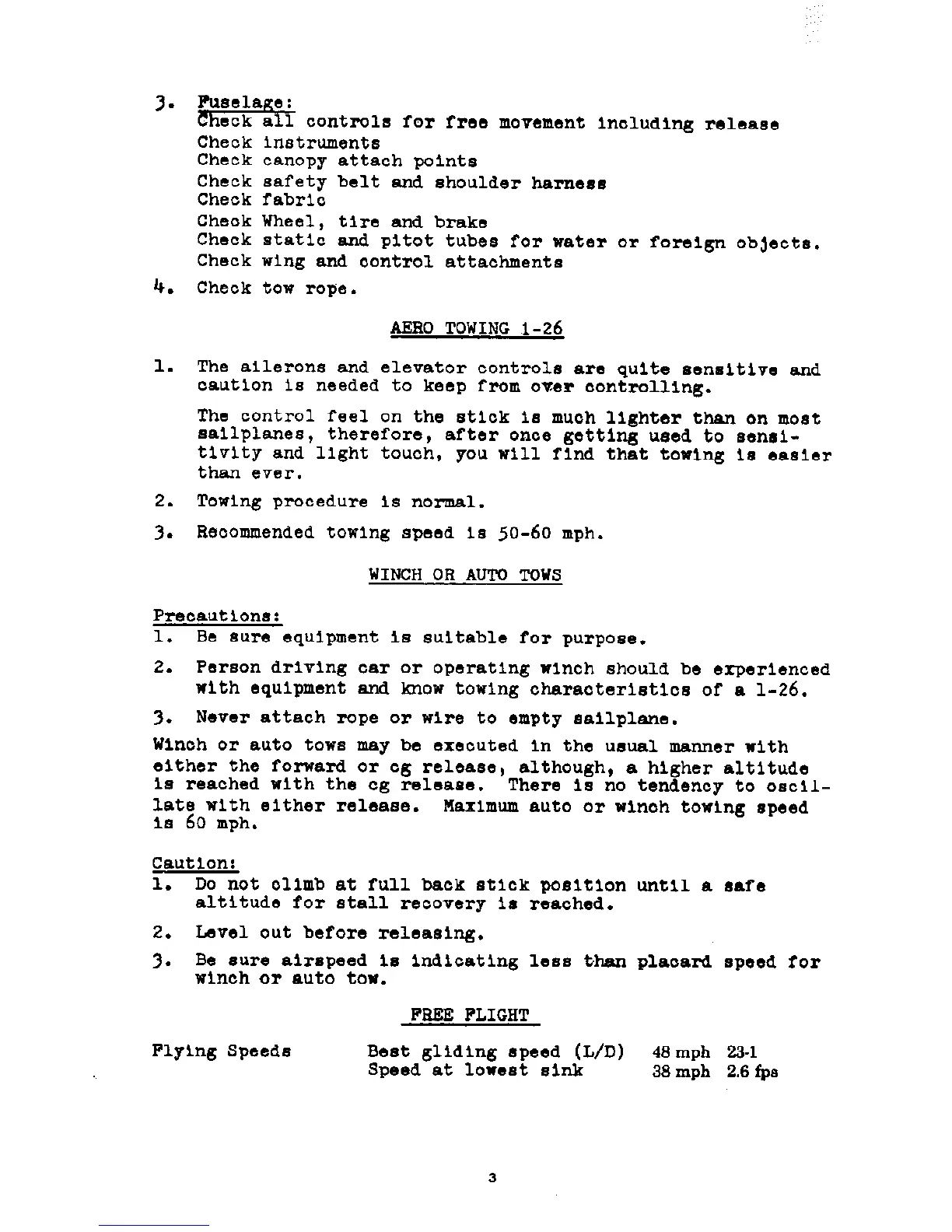 Schweizer 1-26 - Towing Procedures; Free Flight and Performance
