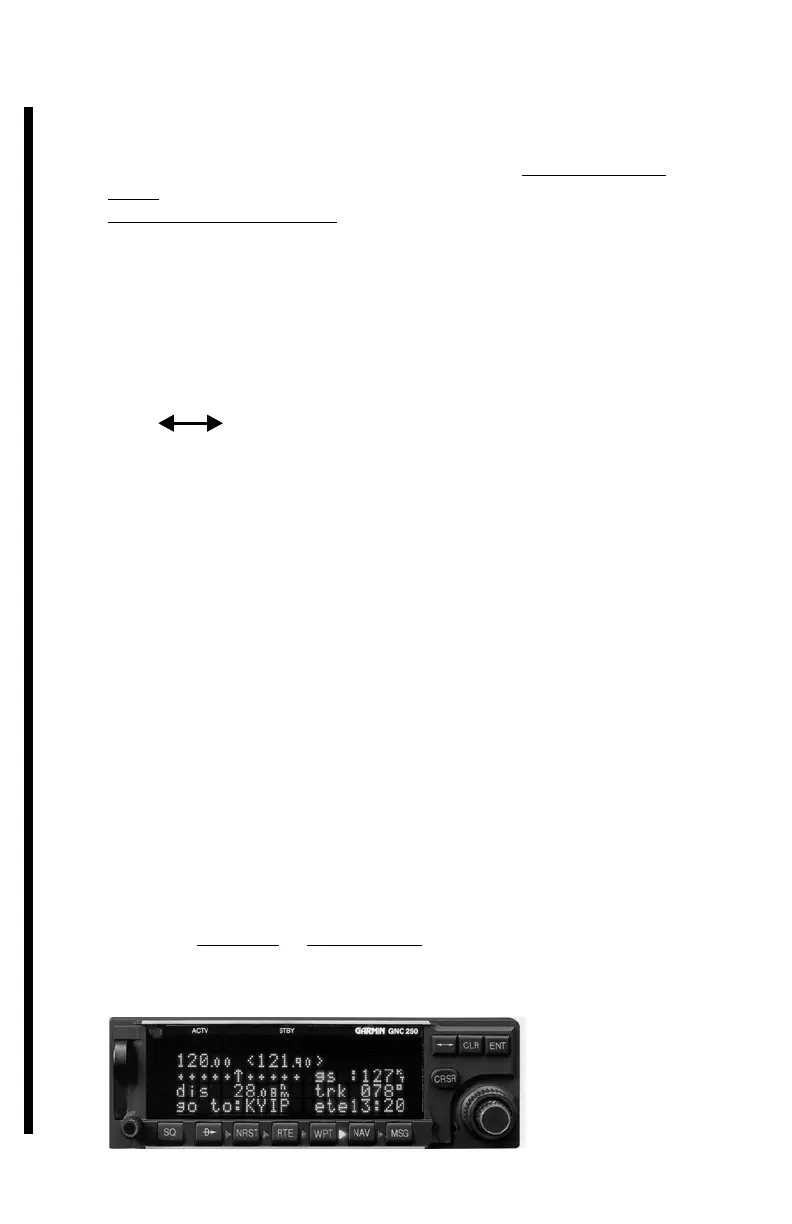 GNC 250/250XL dis play top line is the ACTV (ac tive) and STBY