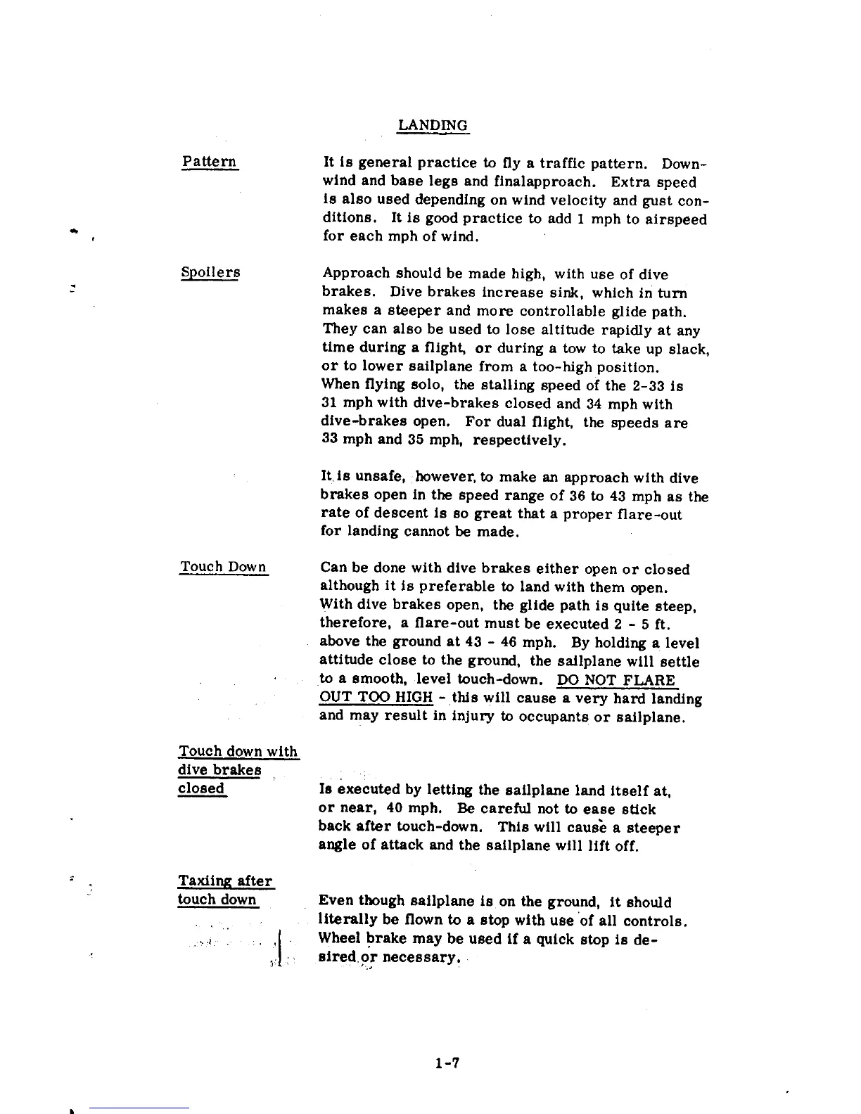Schweizer SGS 2-33 - Landing Procedures Overview; Landing Pattern and Airspeed; Dive Brake Usage in Landing; Safe Touchdown and Taxiing