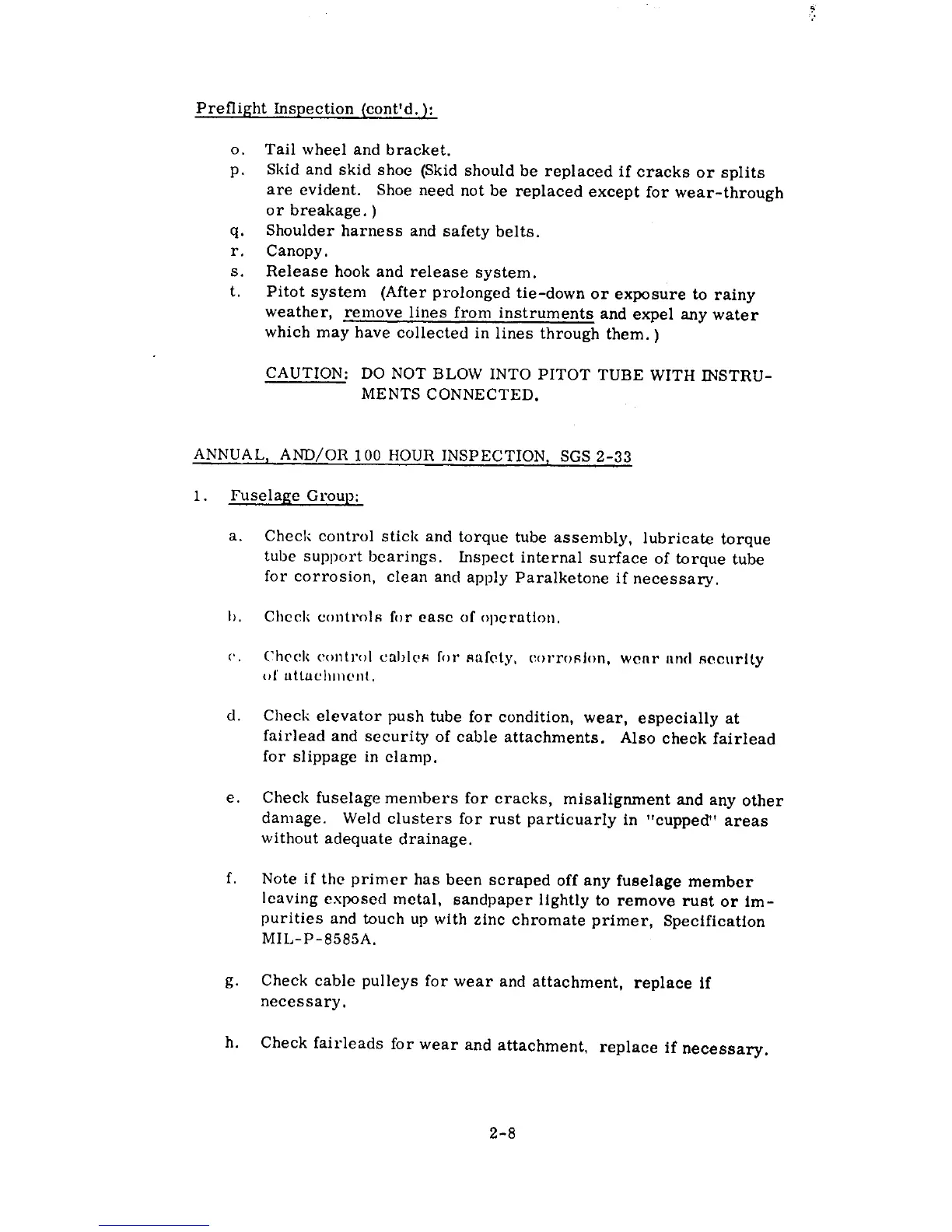 Schweizer SGS 2-33 - Detailed Preflight Inspection Points; Annual and 100 Hour Inspection Programs