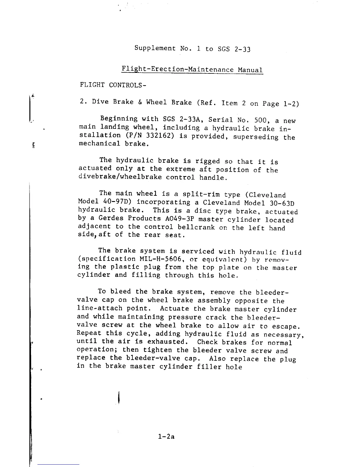 Schweizer SGS 2-33 - Dive Brake and Wheel Brake System Details