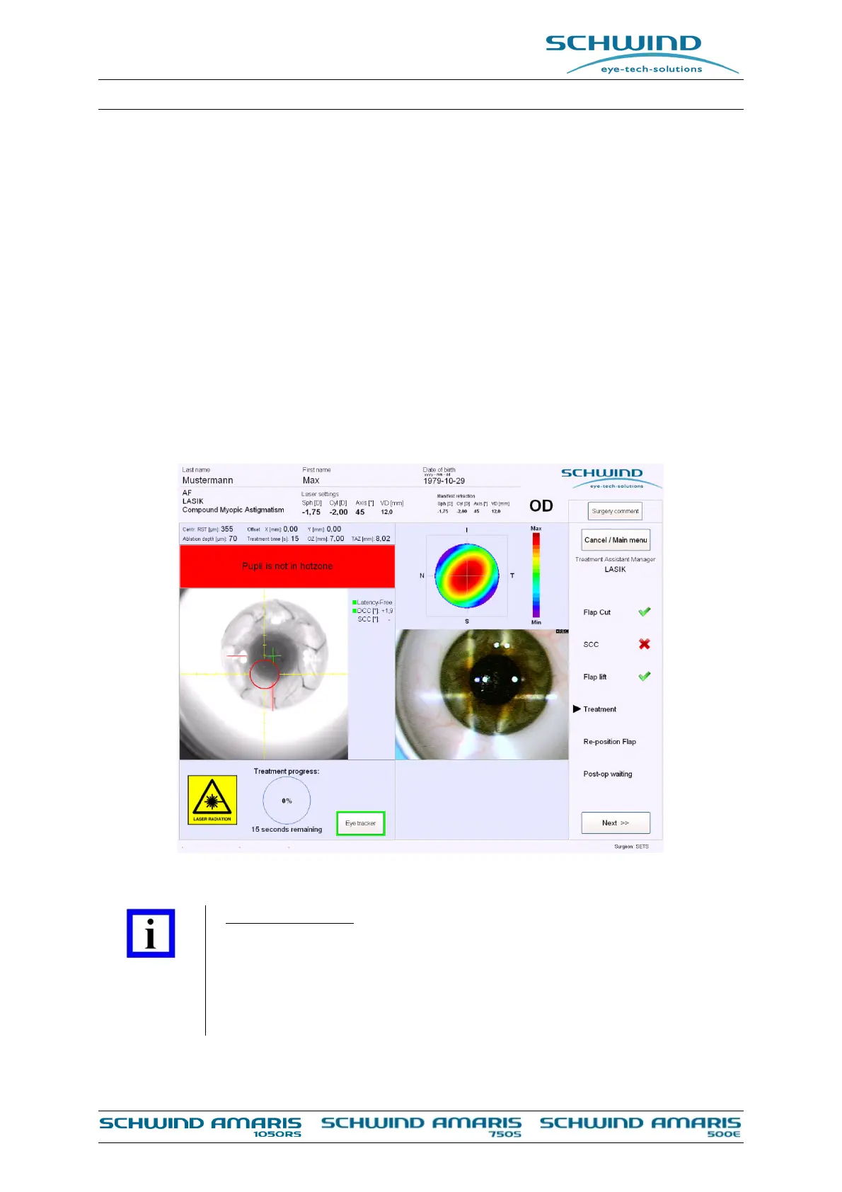 in the eye tracking image. The focus of the excimer laser shall be adjusted and