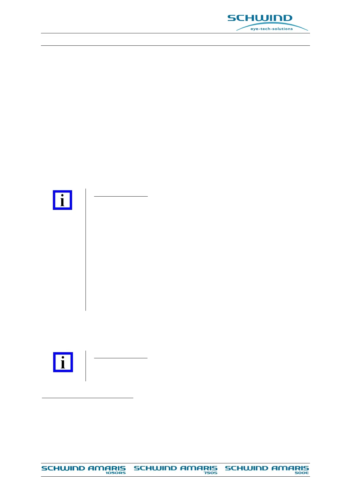 For safe use of the SCHWIND medical device the operator must consider the